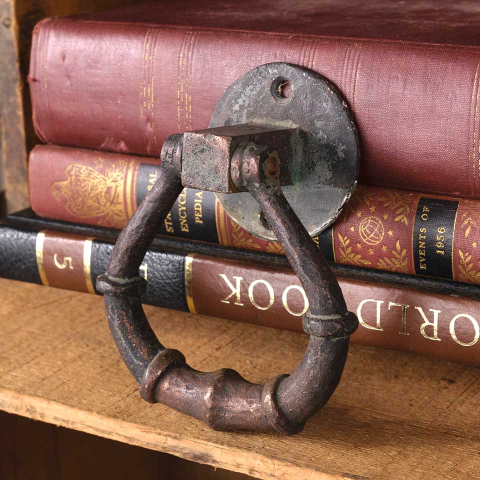 Architectural salvage antique solid brass door knocker hardware measuring approx. 3 3/4" wide x 4 1/2" tall x 2" front to back. There's no knocker plate with this piece. See photos to evaluate condition.