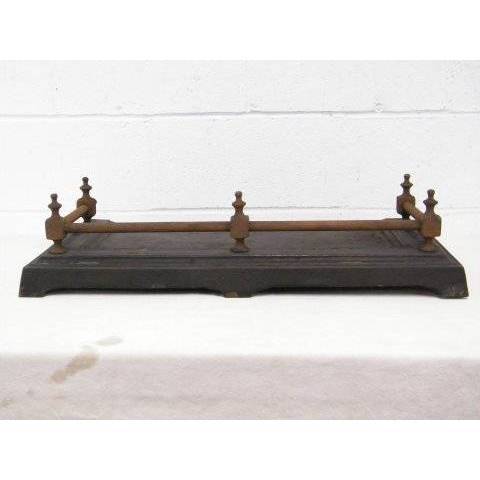 Vintage/antique architectural salvage cast iron fireplace fender with gallery rail measuring approximately 27 15/16" wide x 6 1/4" tall x 13 3/4" front to back.