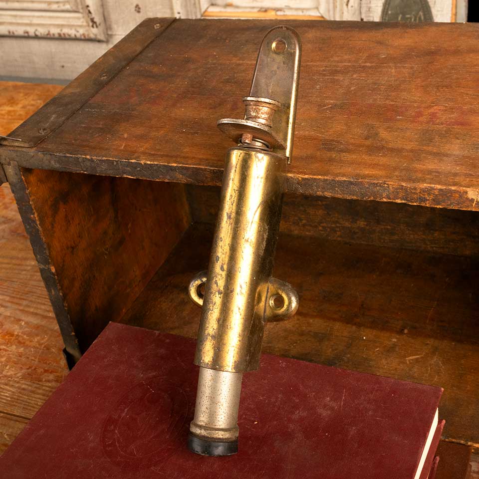 Architectural salvage antique brass foot activated doorstop door hardware measuring approx. 2 3/8" wide x 7 9/16" tall x 1 13/16" thick. Color and condition may vary, see photos to evaluate. Priced at $20/each.