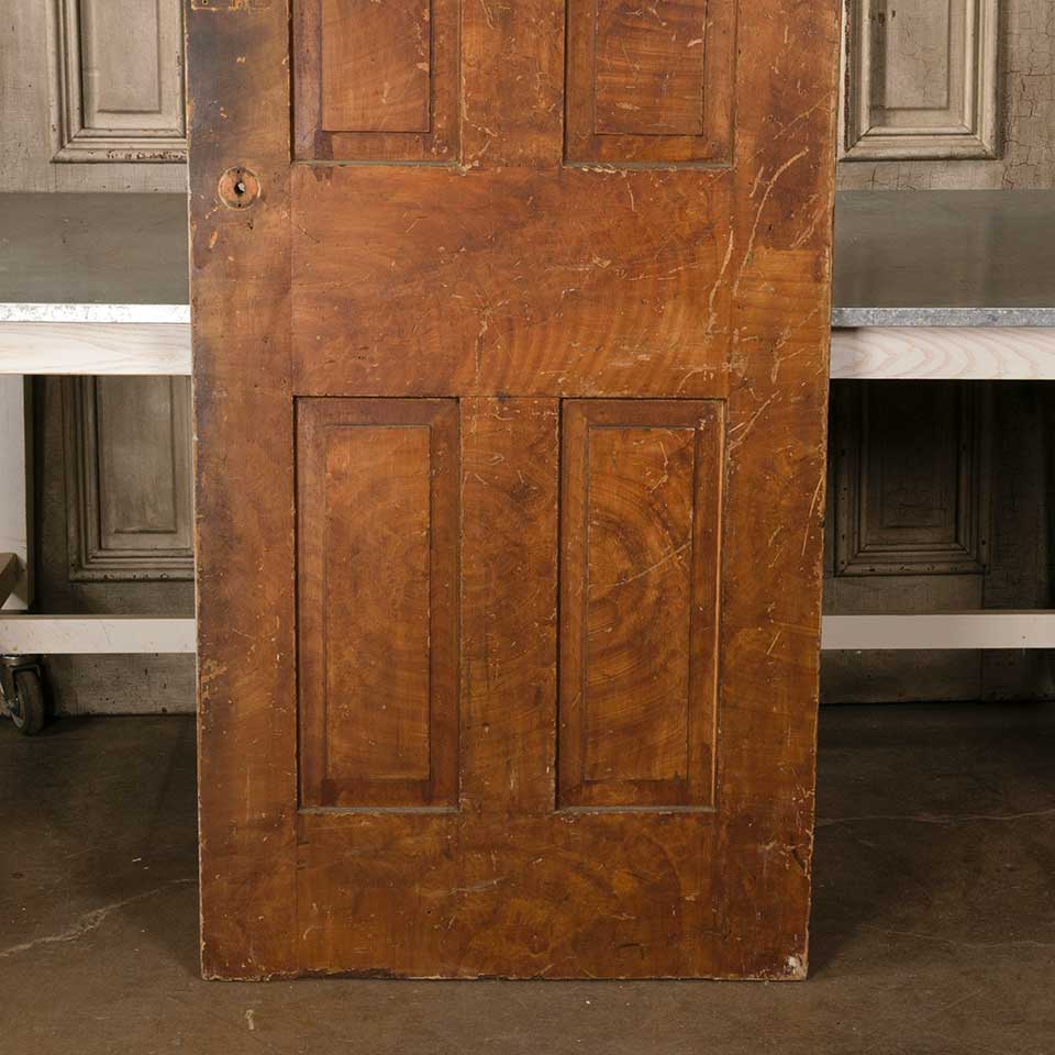 Architectural salvage antique four panel grain painted interior wood door measuring approx. 30" wide x 78 1/2" tall x 1 3/8" thick. There's a piece wood missing from one side of the door. See photos to evaluate condition.