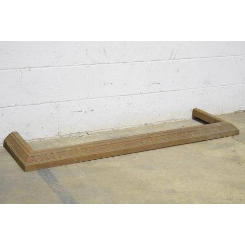 Vintage/antique architectural salvage cast iron fireplace fender with detailed trim measuring approximately 53 1/4" wide x 2 3/4" tall x 14 3/4" front to back.