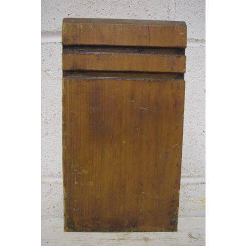 Vintage/antique architectural salvage wood plinth block measuring approximately 5 7/8" wide x 10 3/4-8 3/4" tall x 1 3/4" thick. Priced at $18/each.