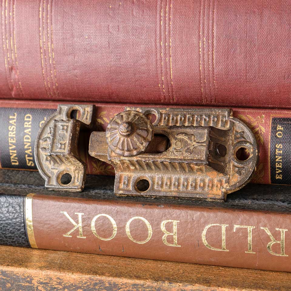 Architectural salvage antique ornate Victorian spring loaded cast iron furniture / cabinet door / transom window latch and catch hardware. The latch measures approx. 2" wide x 1 3/8" tall x 1 1/8" front to back and the catch measures approx. 7/8" wide x 1 3/8" tall x 1/2" front to back. See photos to evaluate condition.