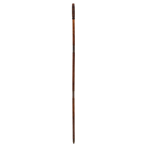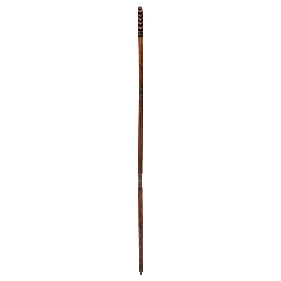 Vintage antique turned wood 3 piece rifle shotgun barrel cleaning rod with brass fittings measuring approximately 36 5/8" long with a 5/8" diameter handle.