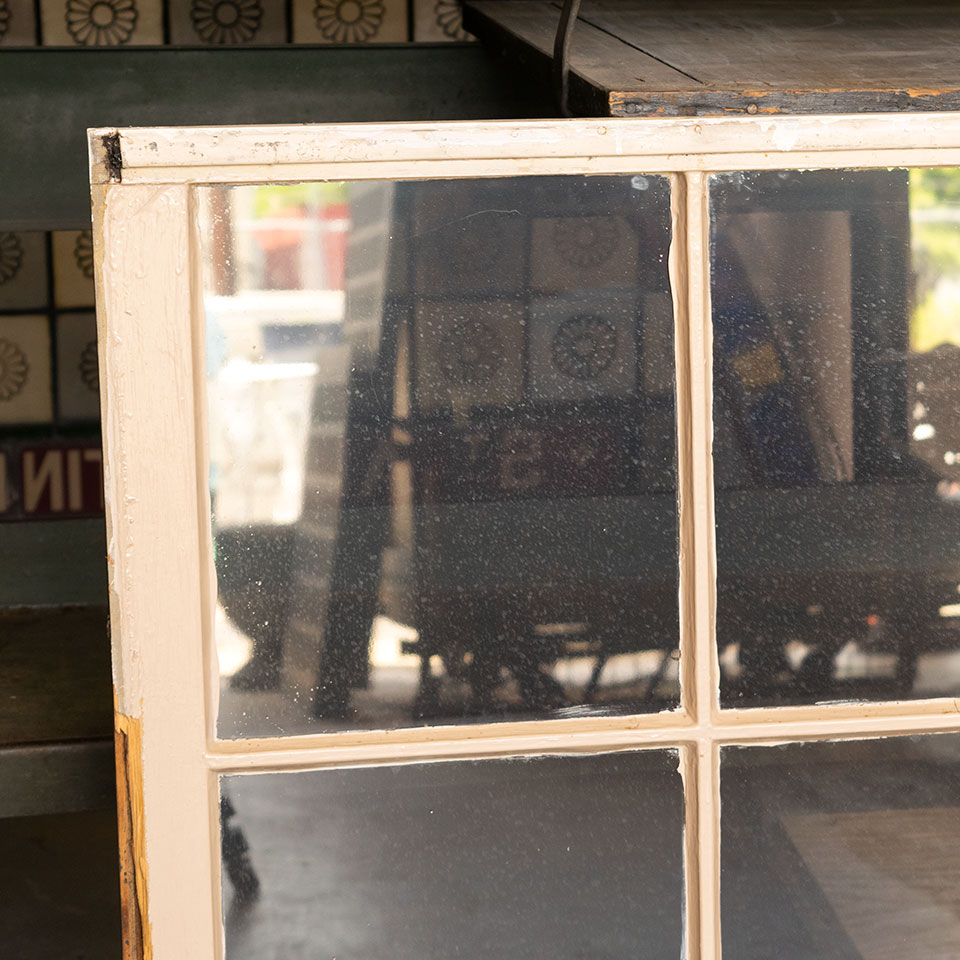 Vintage antique architectural salvage divided lite wood window sash measuring approximately 28 3/8" wide x 32" tall x 1 3/4" thick. Sold individually. Priced at $45/each. Due to the nature of architectural salvage, color and condition may vary.