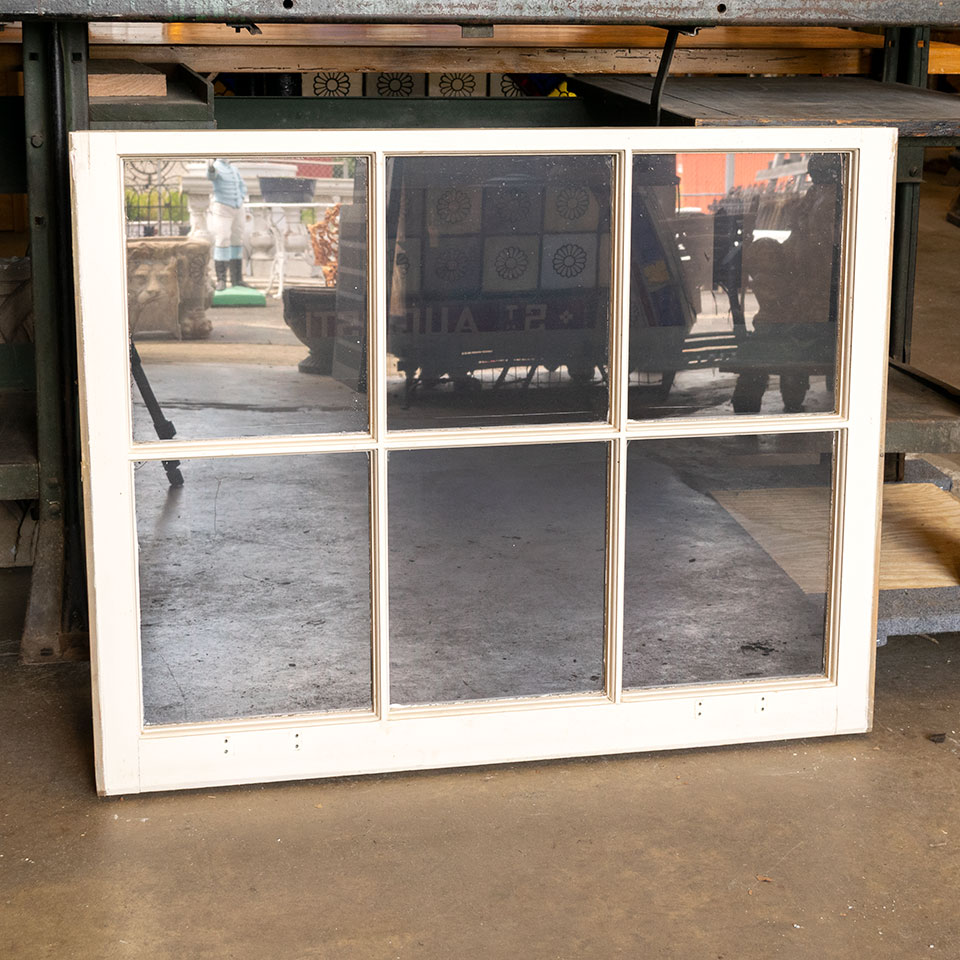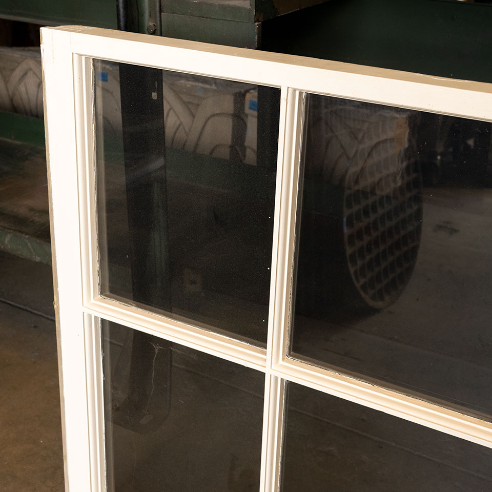 Vintage antique architectural salvage divided lite wood window sash measuring approximately 40 3/8" wide x 32" tall x 1 3/4" thick.