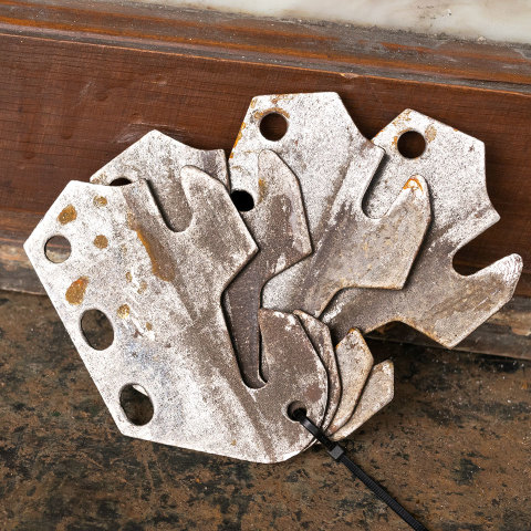 Set of 4 replacement bed rail fasteners for wood bed rails and headboard each measuring 2 3/8" wide x 4" tall x 3/32" thick. Sold as a set of four. Priced at $15/set.