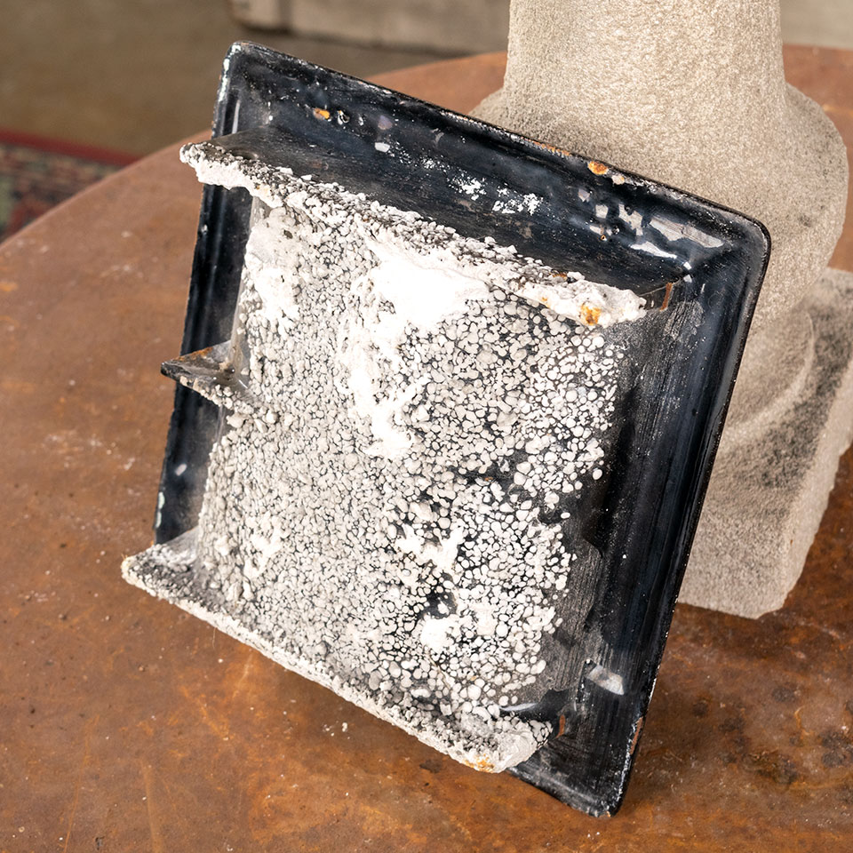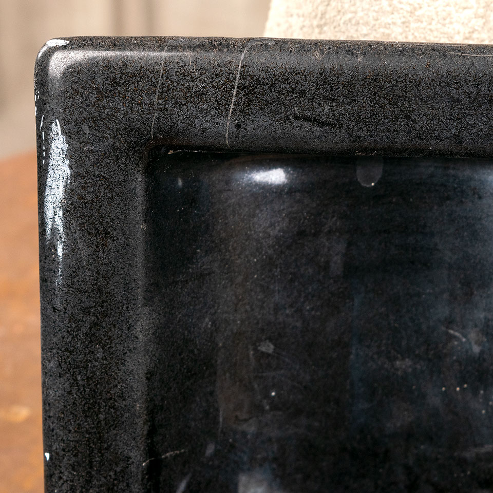 Vintage antique architectural salvage recessed wall mount black porcelain enameled cast iron bathroom sink or shower cubby measuring approximately 6 15/16" wide x 6 7/8" tall x 4" front to back overall.