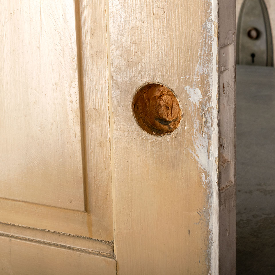 Antique architectural salvage 6 panel interior wood pocket door measuring approximately 28" wide x 80 1/2" tall x 1 3/8" thick.