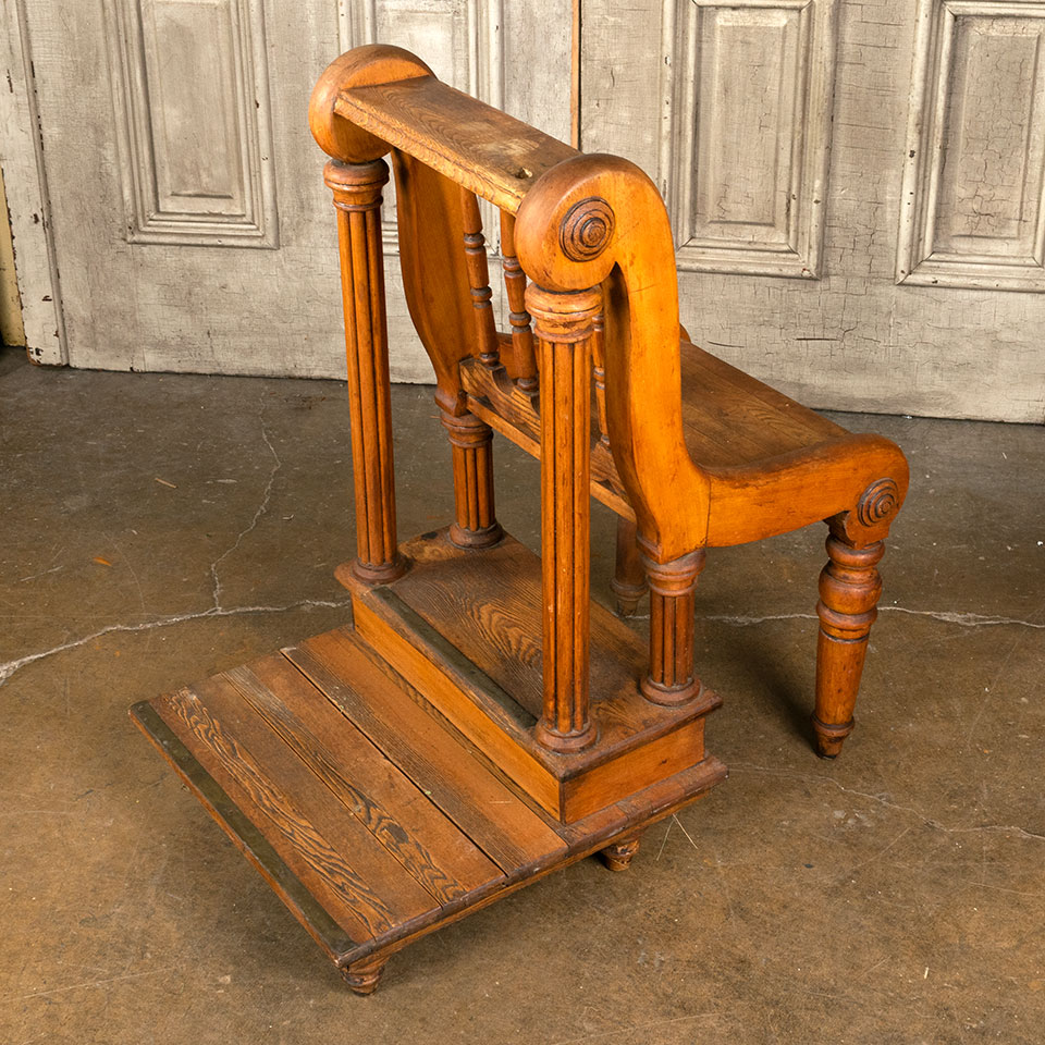 Unusual antique turned carved wood step chair measuring approximately 18 1/2" wide x 32" tall x 29 1/2" front to back.