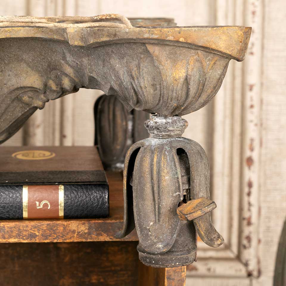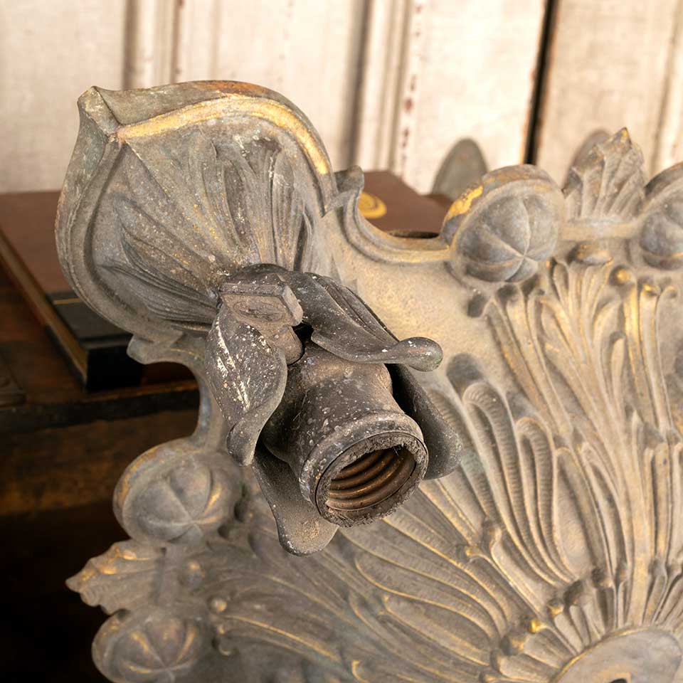 Architectural salvage antique four bulb heavy cast brass light fixture measuring approx. 21" in diameter x 5 1/4" tall. This fixture will need to be rewired and is being sold in AS IS condition. See photos to evaluate condition.
