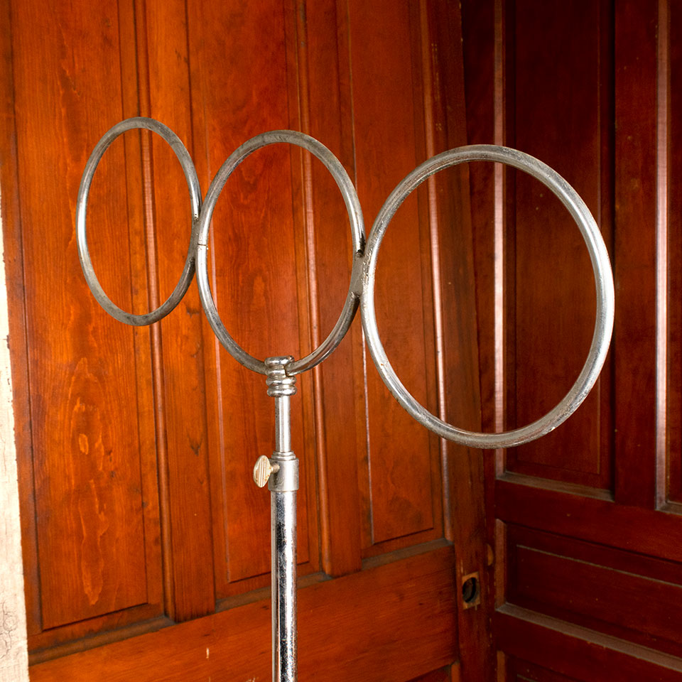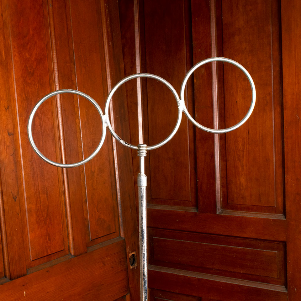 Antique chrome clothes store adjustable countertop necktie or scarf display rack measuring approx. 17 1/2" wide x 27"-34 1/2" tall with an 8" diameter base. See photos to evaluate condition.