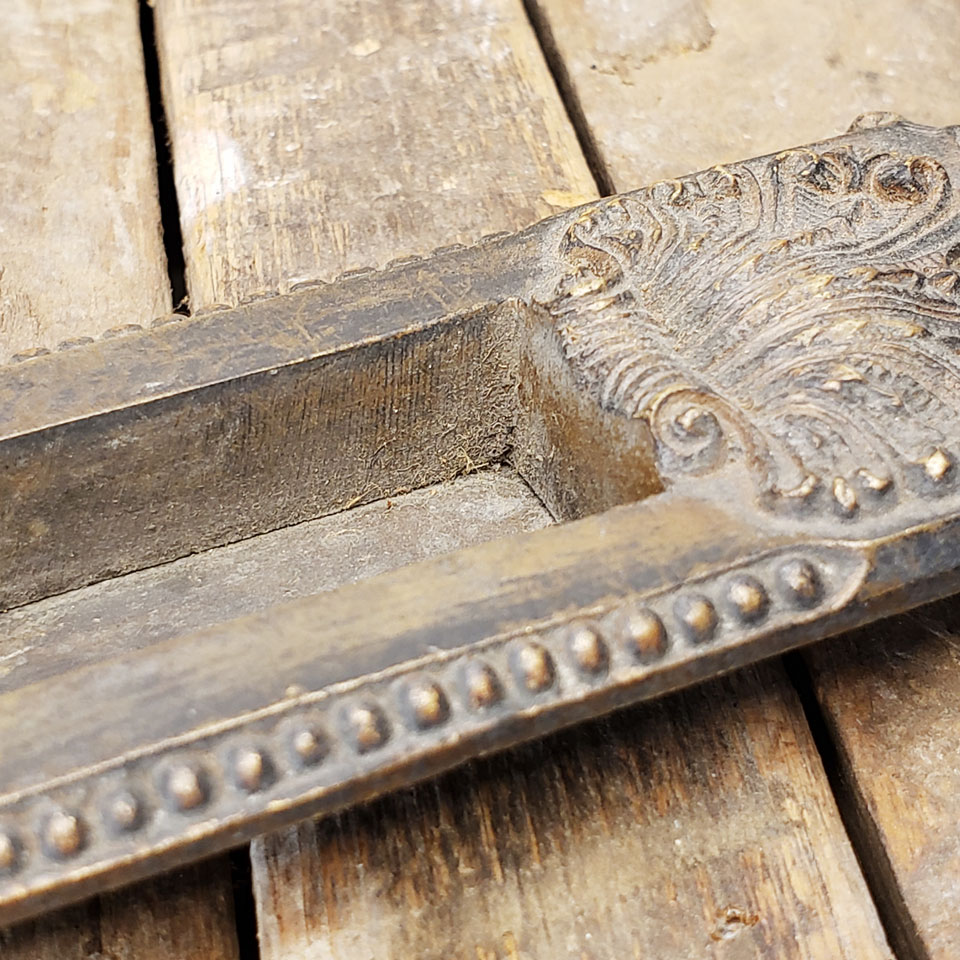 Antique architectural salvage cast bronze recessed window sash lift hardware measuring approximately 5 5/8" wide x 1 3/4" tall x 5/8" front to back. Recessed area measures 2 1/4" x 7/8". Sold individually. Condition may vary. Priced at $45/each.