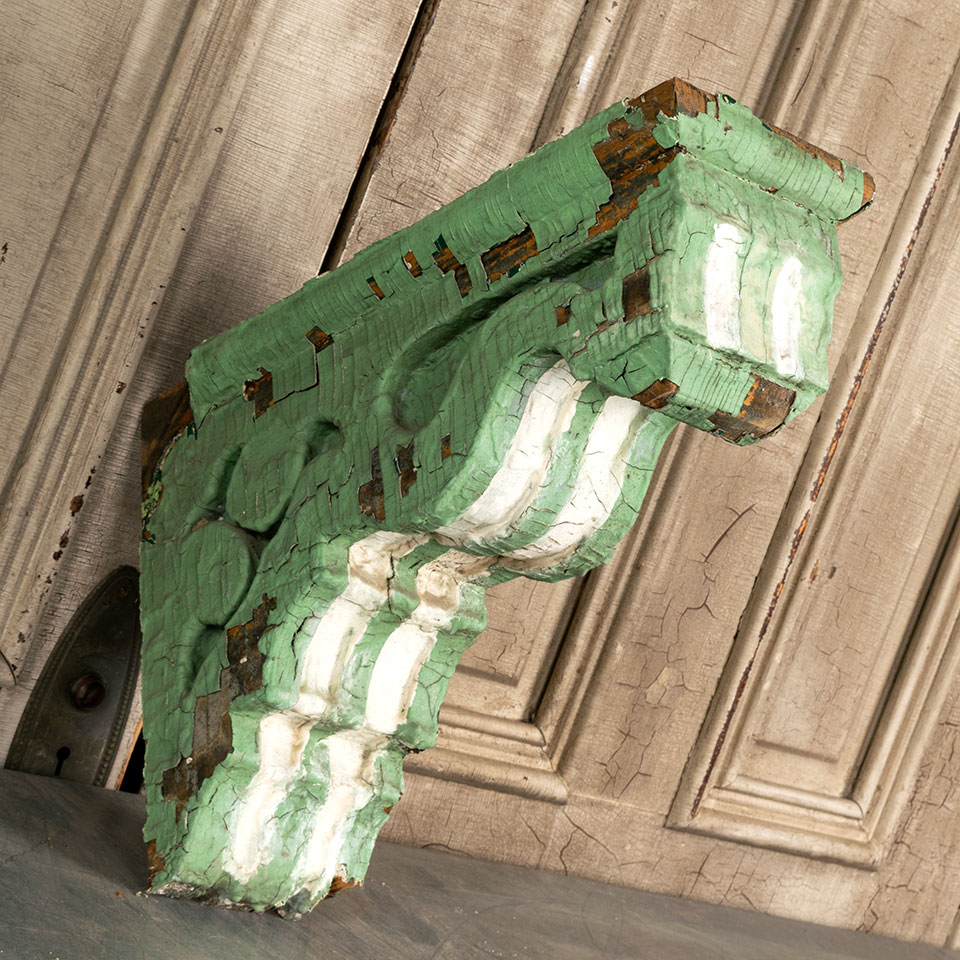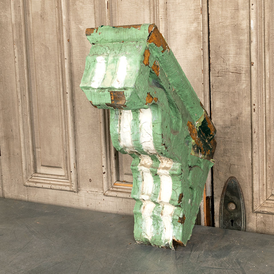 Antique architectural salvage wood corbel bracket measuring approx. 7" wide x 12 1/2" tall x 19" front to back. Color and condition may vary, see photos to evaluate. Priced at $65/each.