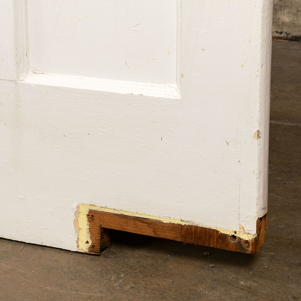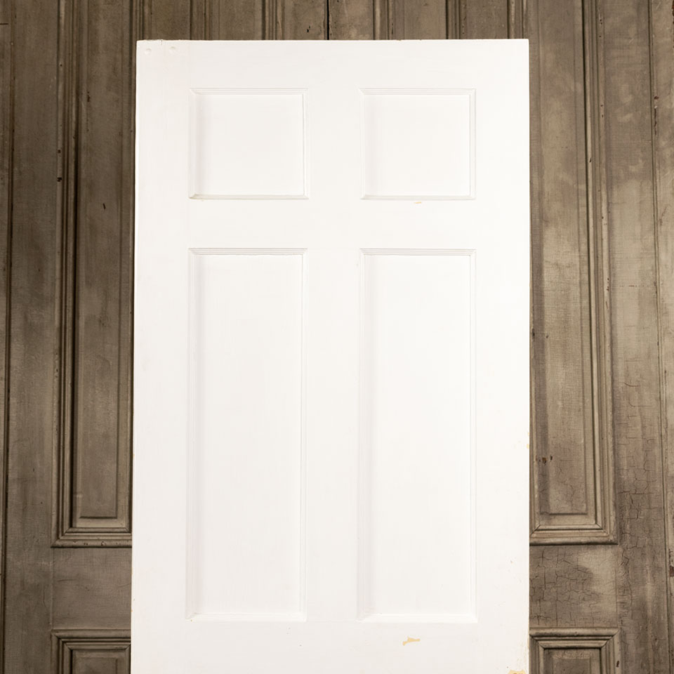 Antique architectural salvage painted wood 6 panel swing door measuring approx. 29 5/8" wide x 79 1/2" tall x 1 3/8" thick. See photos to evaluate condition.