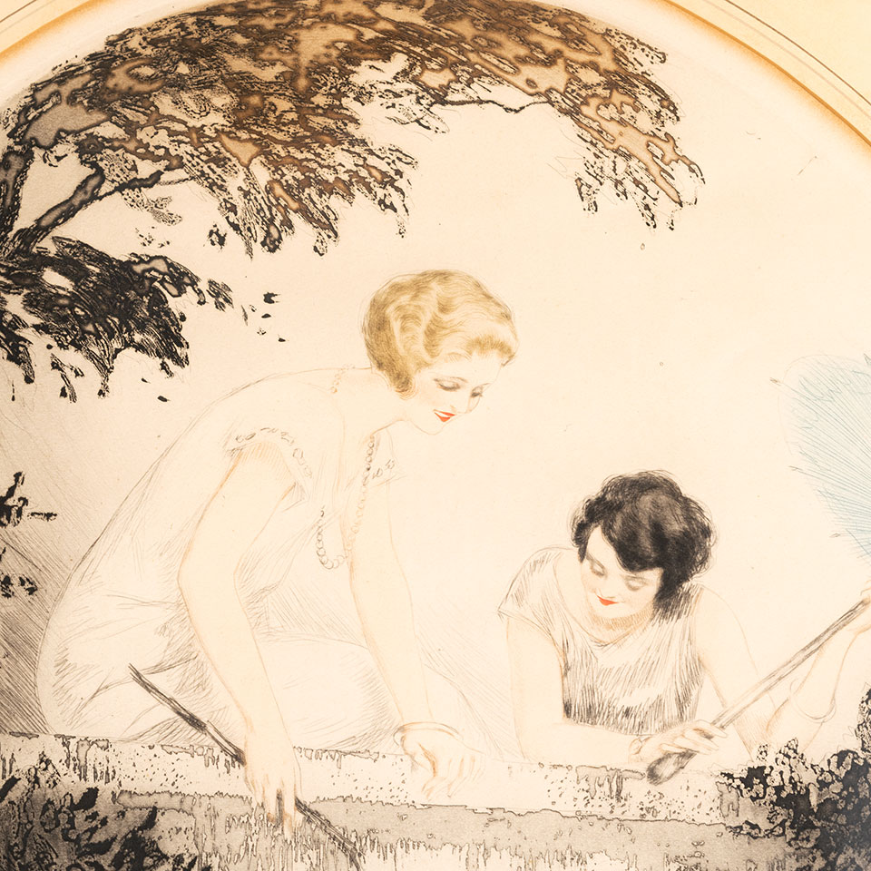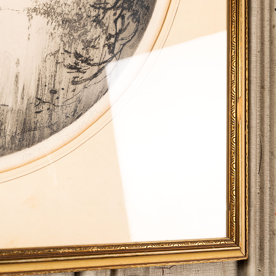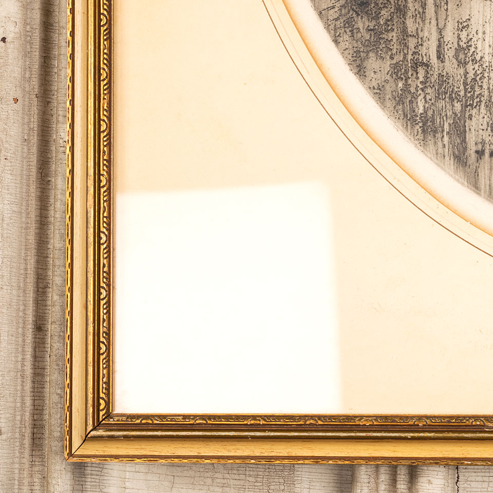 Framed antique Art Deco print measuring approx. 24 5/8" wide x 28 5/8" tall x 1" front to back. See photos to evaluate condition.