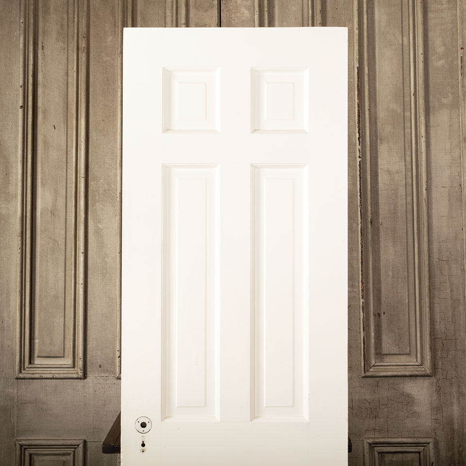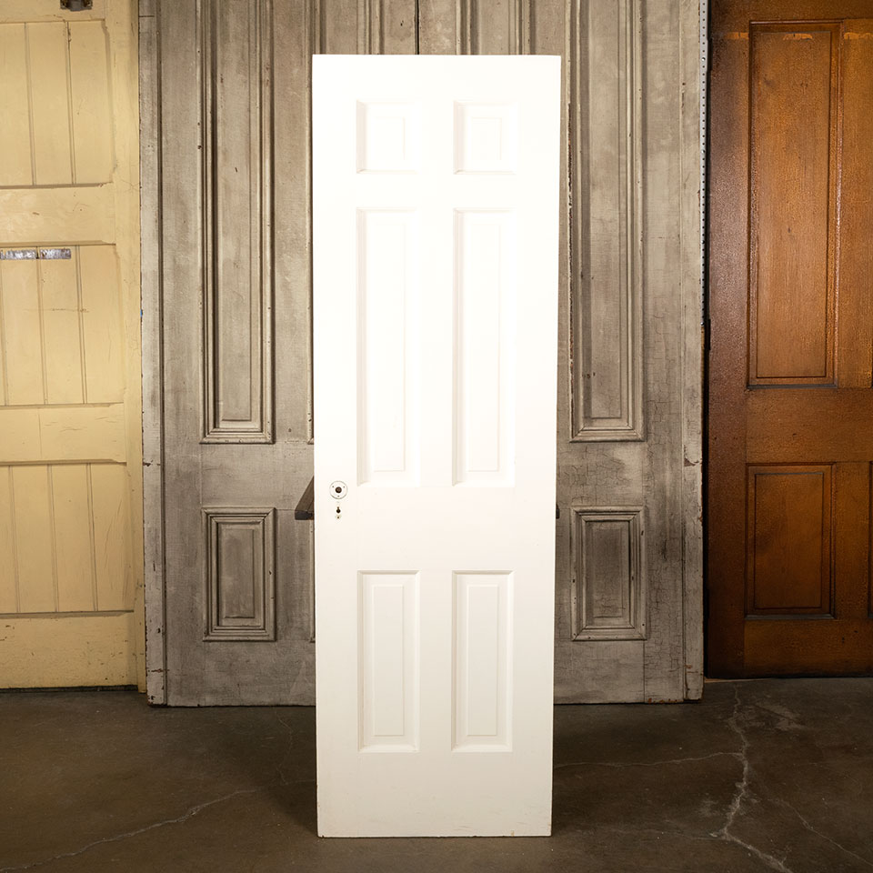 Antique architectural salvage painted wood 6 panel interior door measuring approx. 24" wide x 77 3/4" tall x 1 3/8" thick. See photos to evaluate condition.