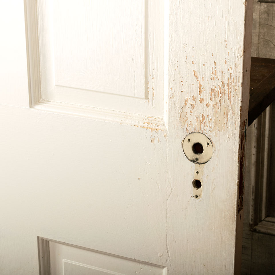 Antique architectural salvage painted wood 6 panel interior door measuring approx. 29 3/4" wide x 77 3/16" tall x 1 3/8" thick. See photos to evaluate condition.