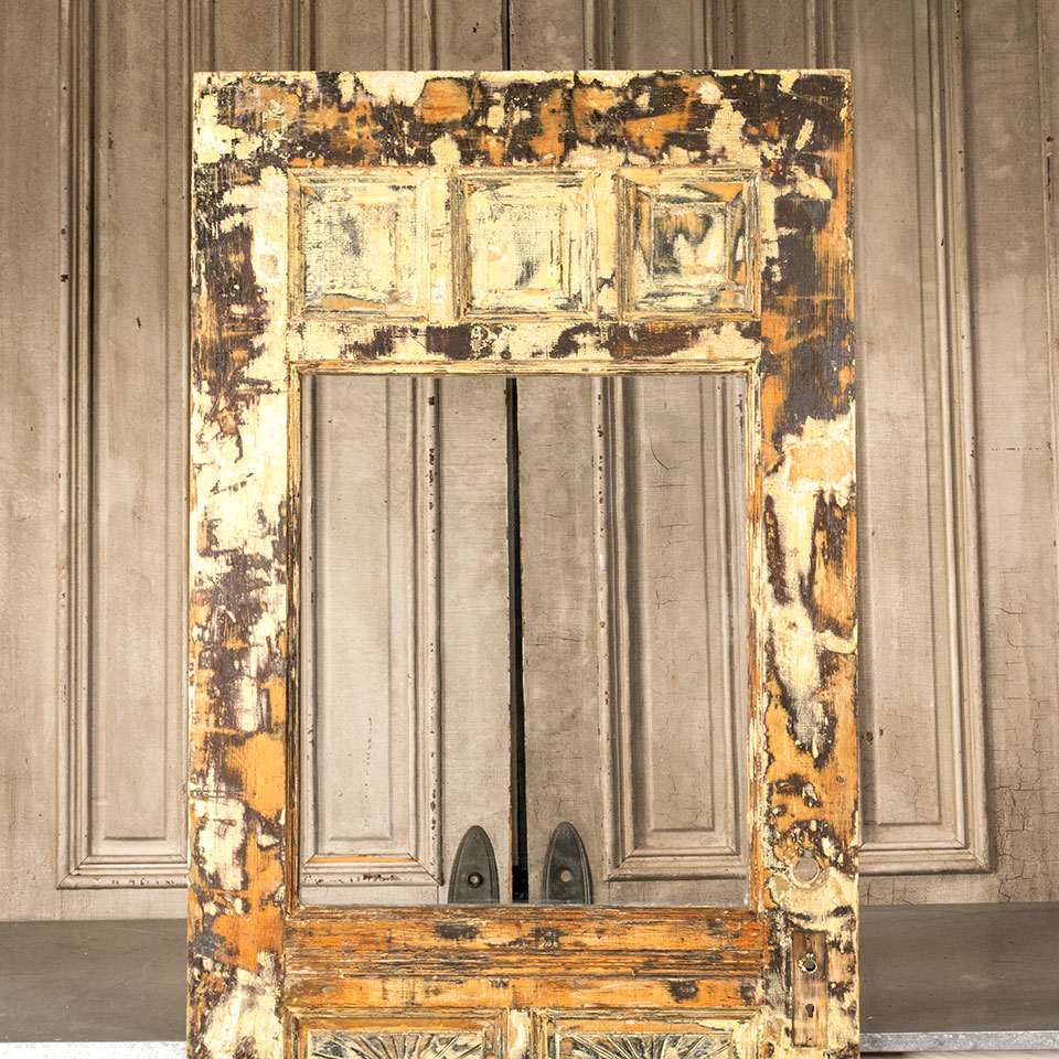 Antique architectural salvage Victorian half-lite wood entry door with wavy glass measuring approx. 31 7/8" wide x 79 3/8" tall x 1 3/8" thick. Some of the paint has been removed from the exterior side and the interior side is natural. See photos to evaluate condition.