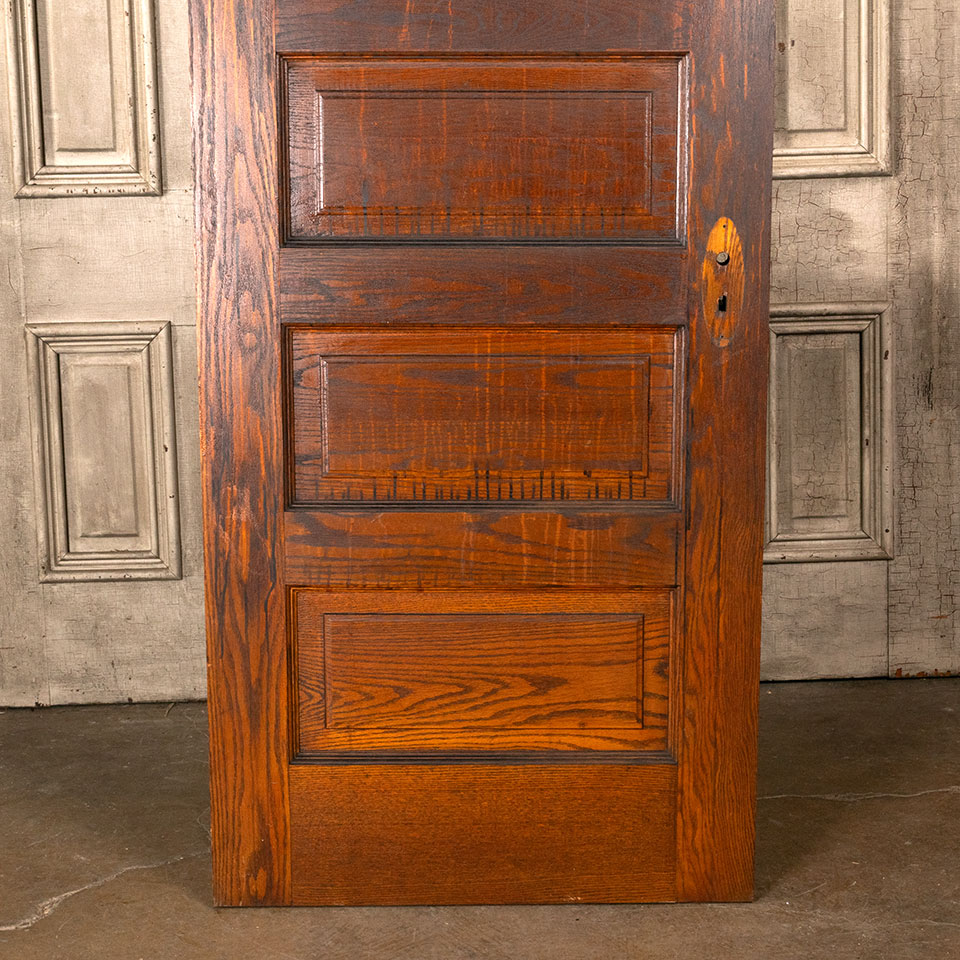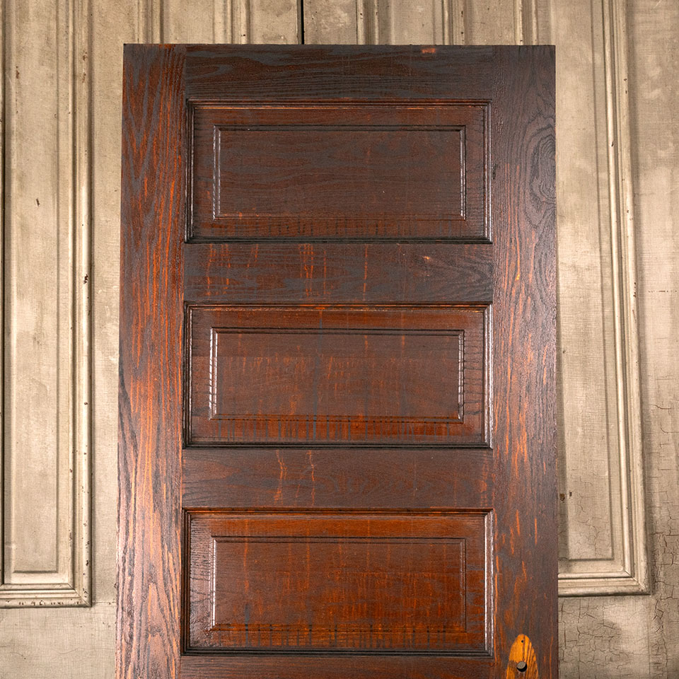 Antique architectural salvage 5 horizontal panel oak interior door measuring approx. 30" wide x 78" tall x 1 3/4" thick. This door came from a fire damaged home. See photos to evaluate condition.