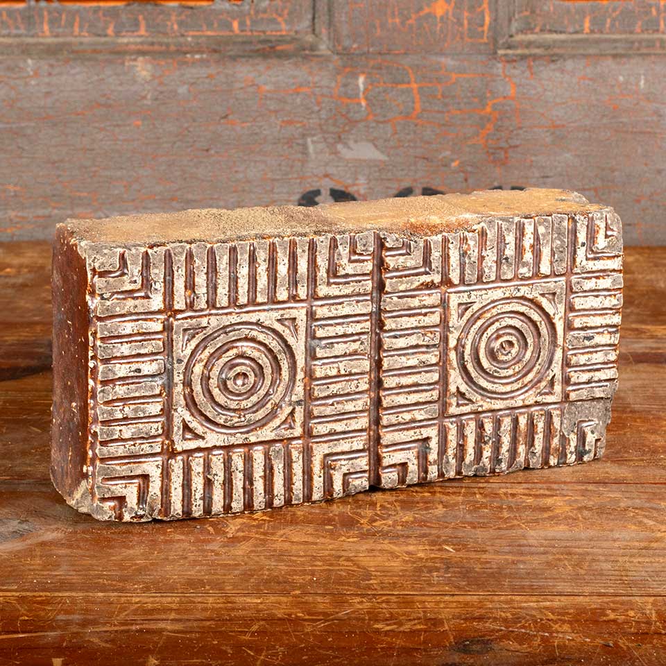 Architectural salvage antique salt glazed paver brick with circle pattern measuring approx. 9 3/4" wide x 4 3/4" tall x 2 1/2" thick. Color and condition varies. Priced at $15/each. More available, contact us to inquire.