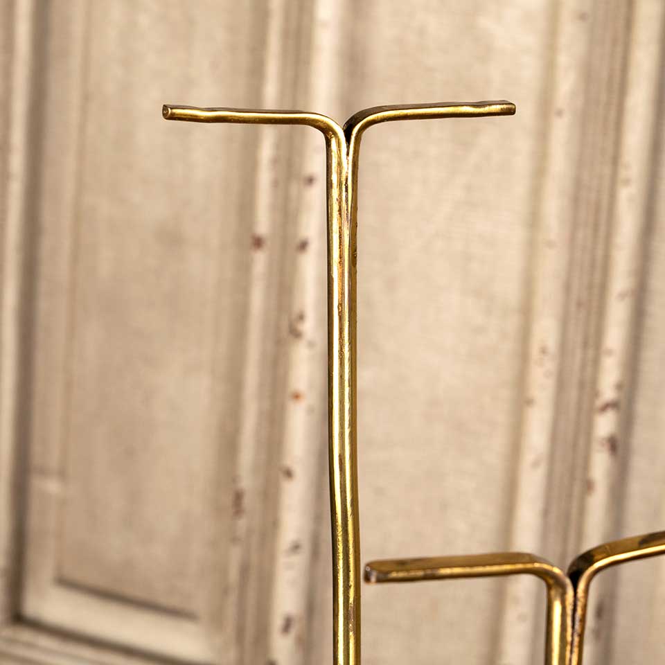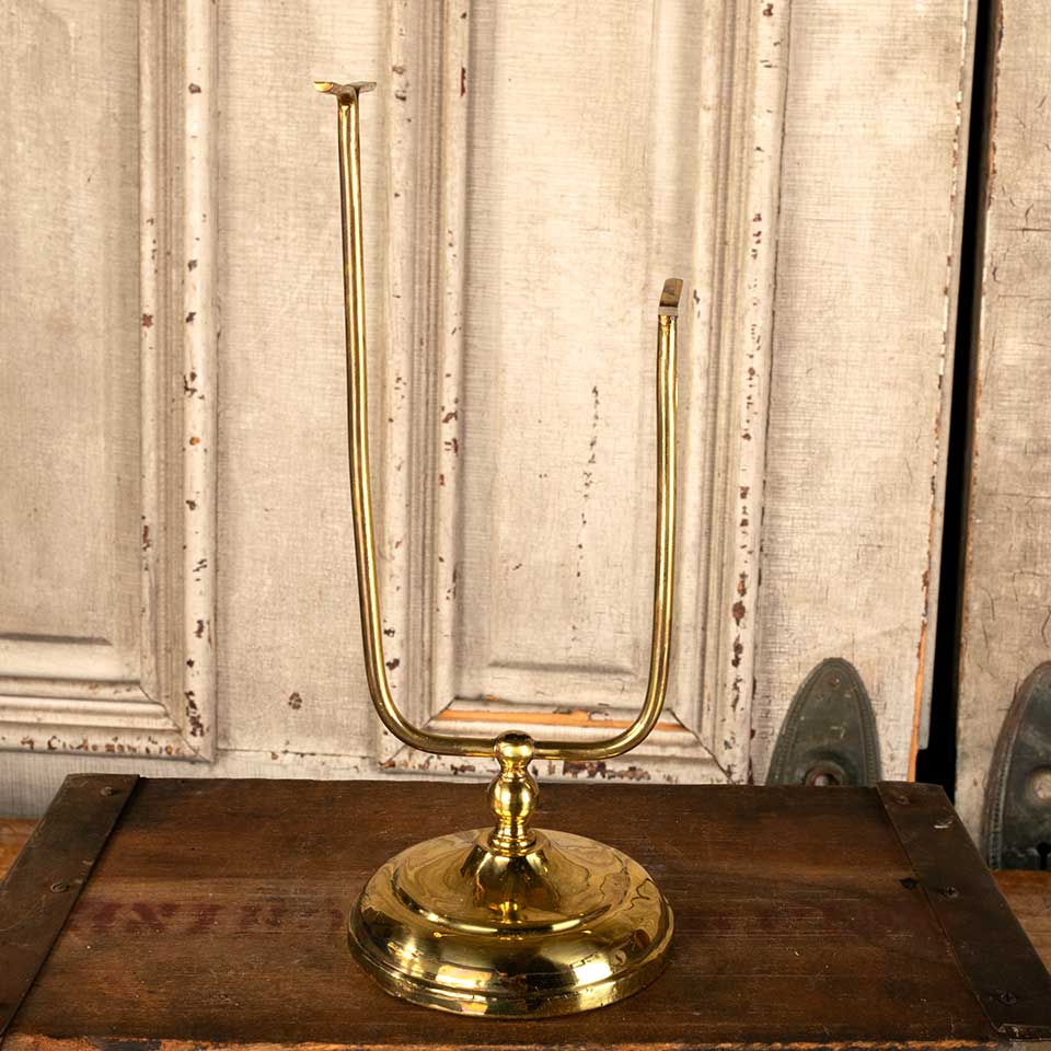 Architectural salvage antique brass hand towel and wash cloth sink top stand measuring approx. 11" tall with a 4 3/8" diameter base. Marked on bottom McKENNA BROS. BRASS CO. LT. PGH. PA. See photos to evaluate condition.