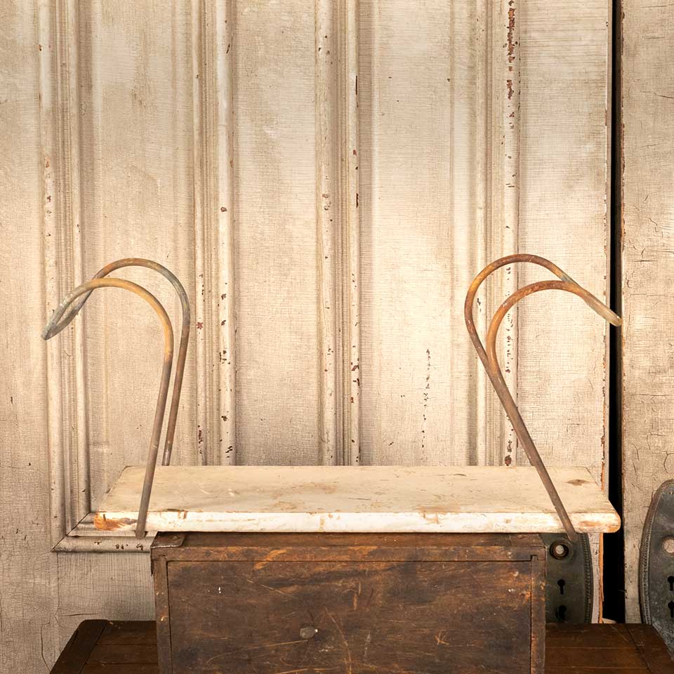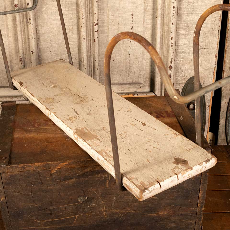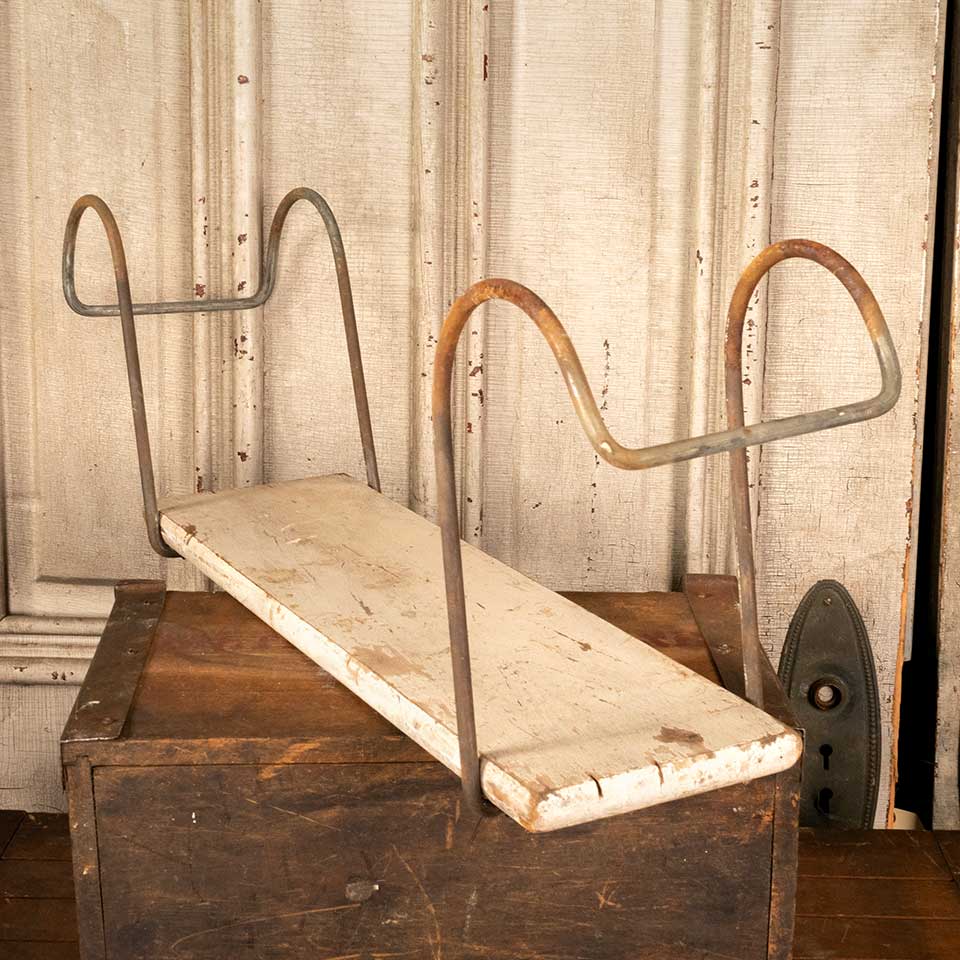 Antique clawfoot bathtub hanging wood seat measuring approx. 5 3/4" x 19" (seat) with 9 3/4" tall folding metal arms. See photos to evaluate condition.