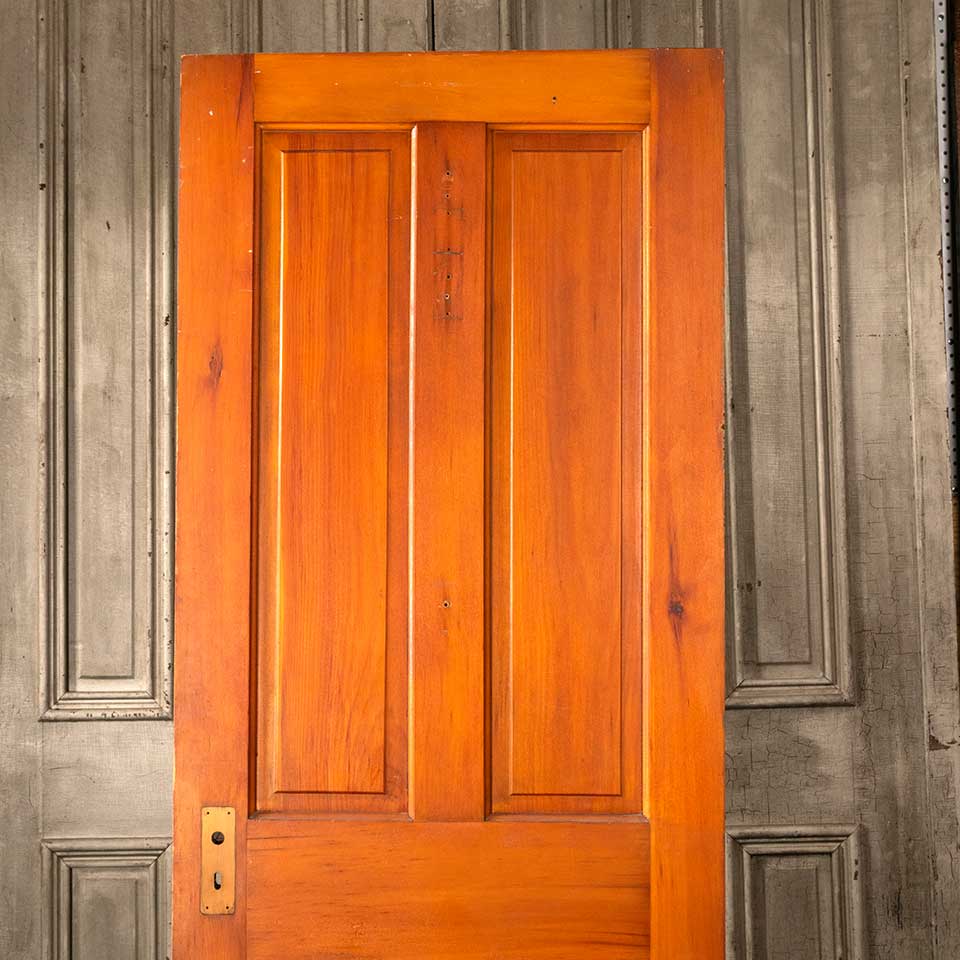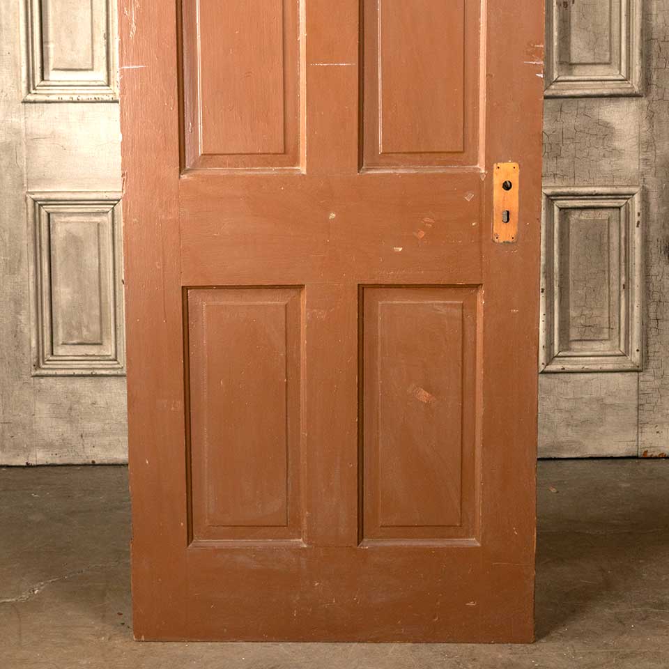 Antique architectural salvage wood 4 panel interior door measuring approx. 29 3/4" wide x 76 3/4" tall x 1 3/8" thick. This door is natural on one side and painted on the other. See photos to evaluate condition.