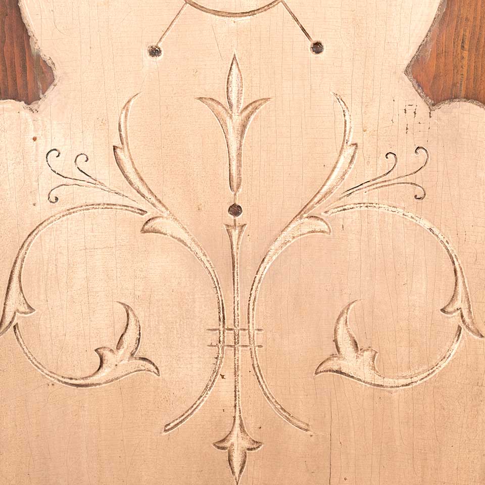Framed antique architectural salvage ornament wall hanging measuring approx. 25 1/8" wide x 37" tall x 1 1/4" front to back. See photos to evaluate condition.