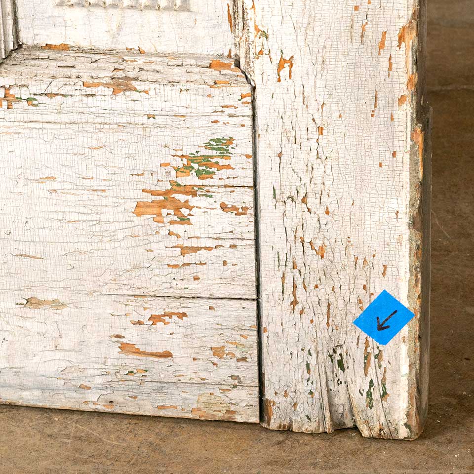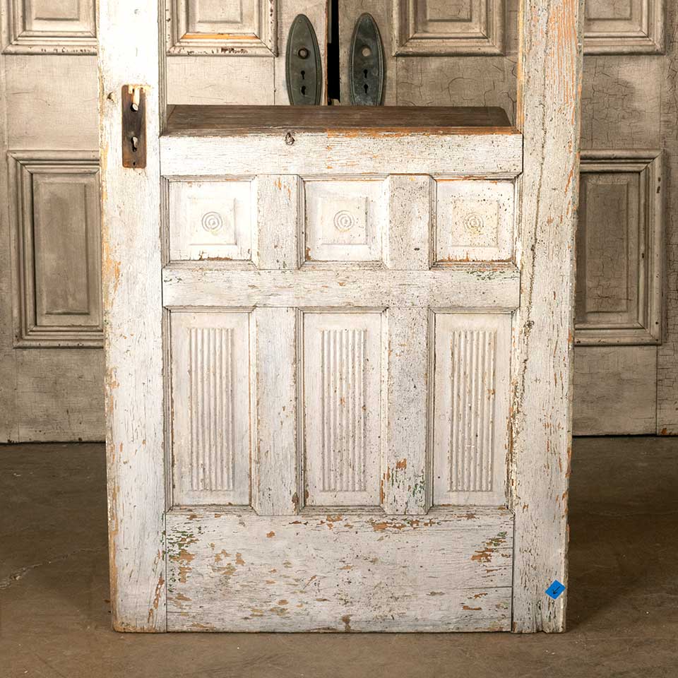 Architectural salvage antique Victorian half lite painted wood entry door measuring approx. 32 1/8" wide x 79 1/2" tall x 1 3/8" thick. There's no glass in the opening and some wood loss at the bottom of the door. See photos to evaluate condition.