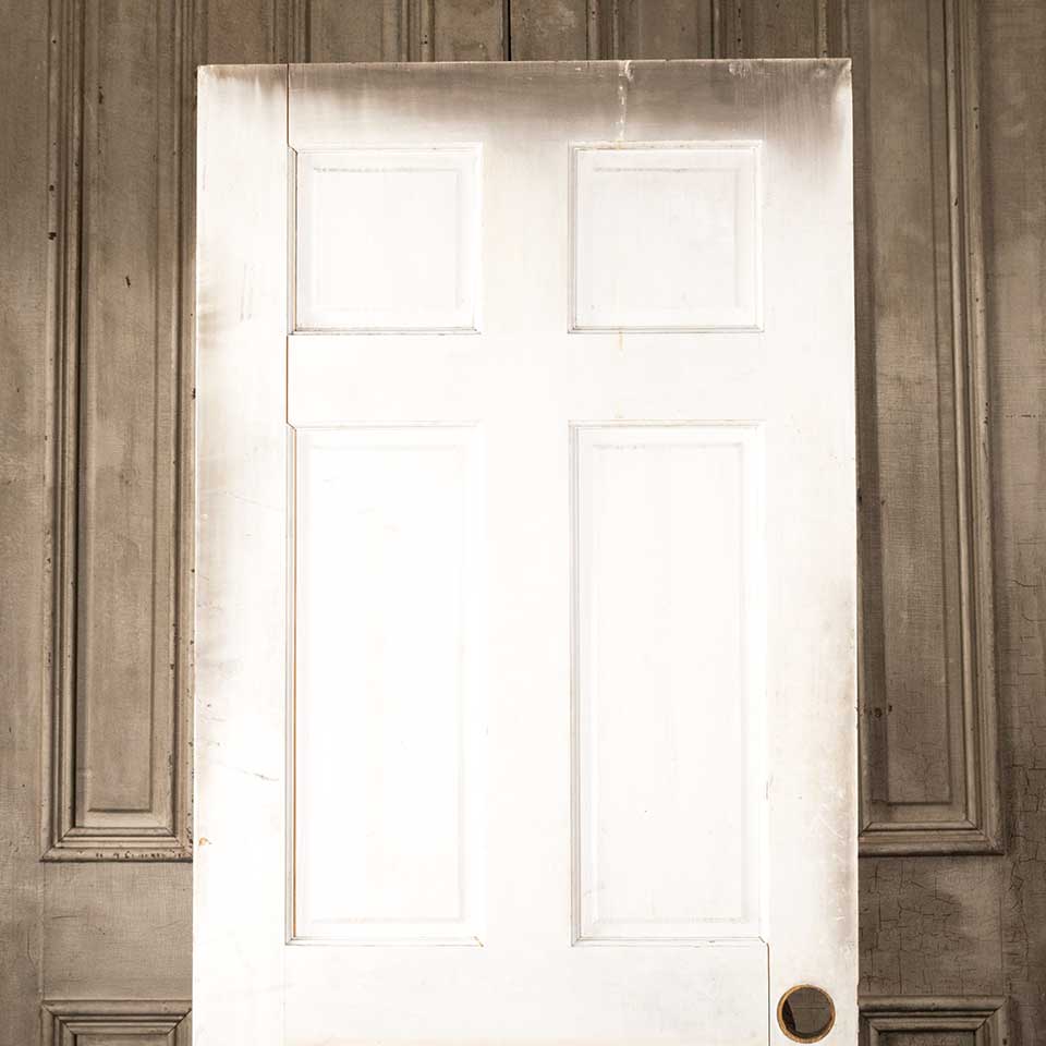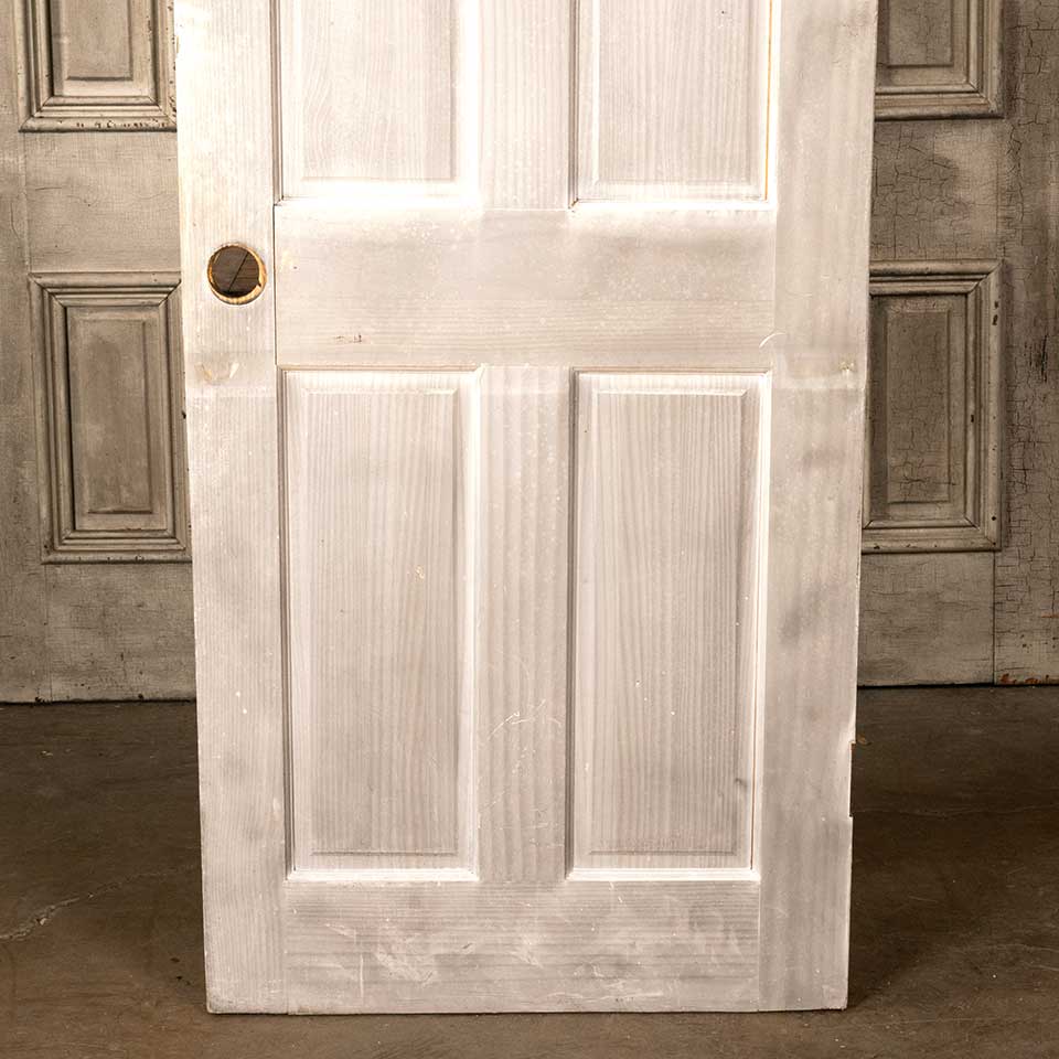 Architectural salvage six panel painted wood interior door measuring approx. 30" wide x 77 1/4" tall x 1 3/8" front to back. See photos to evaluate condition.
