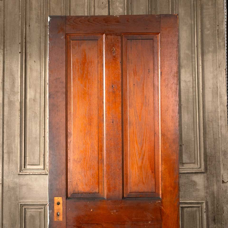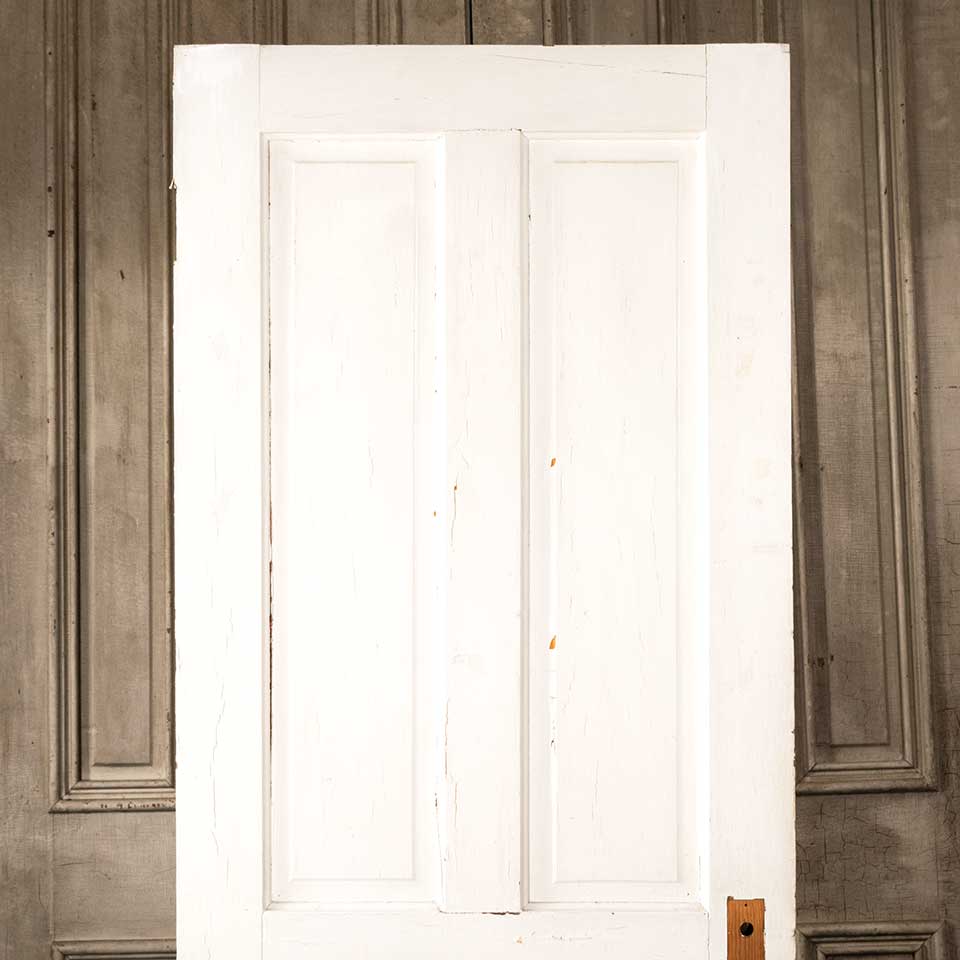 Architectural salvage antique four panel wood interior door measuring approx. 30 1/8" wide x 77 3/8" tall x 1 3/8" front to back. This door is painted on one side and natural on the other. See photos to evaluate condition.