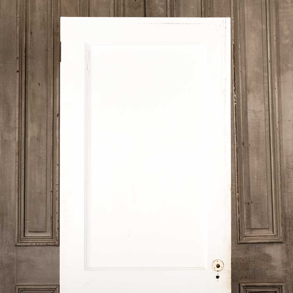 Architectural salvage antique two panel wood interior door measuring approx. 29 15/16" wide x 79 1/8" tall x 1 3/8" thick. This door is painted on one side and natural on the other. See photos to evaluate condition.