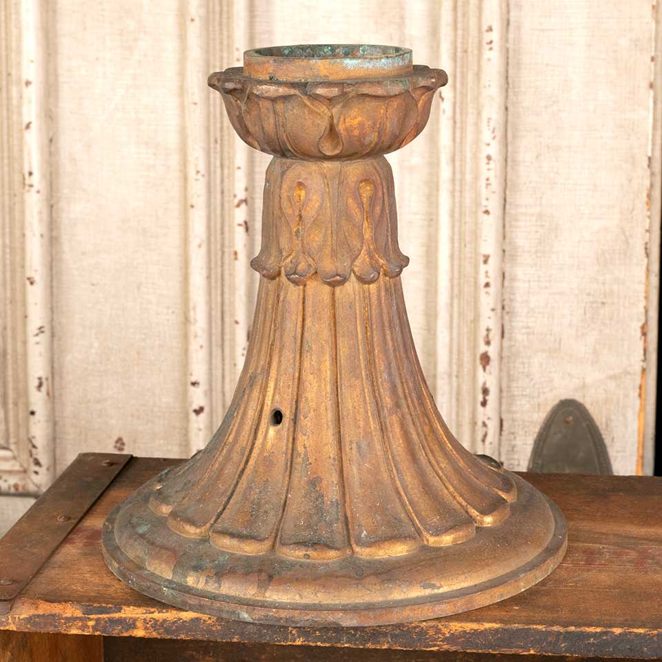 Architectural salvage antique ornate heavy cast brass chandelier part measuring approx. 9" tall with a 2 7/8" diameter top and an 8 3/8" diameter base. These would make great repurposed candle holders. Color and condition may vary, see photos to evaluate. Priced at $95/each.