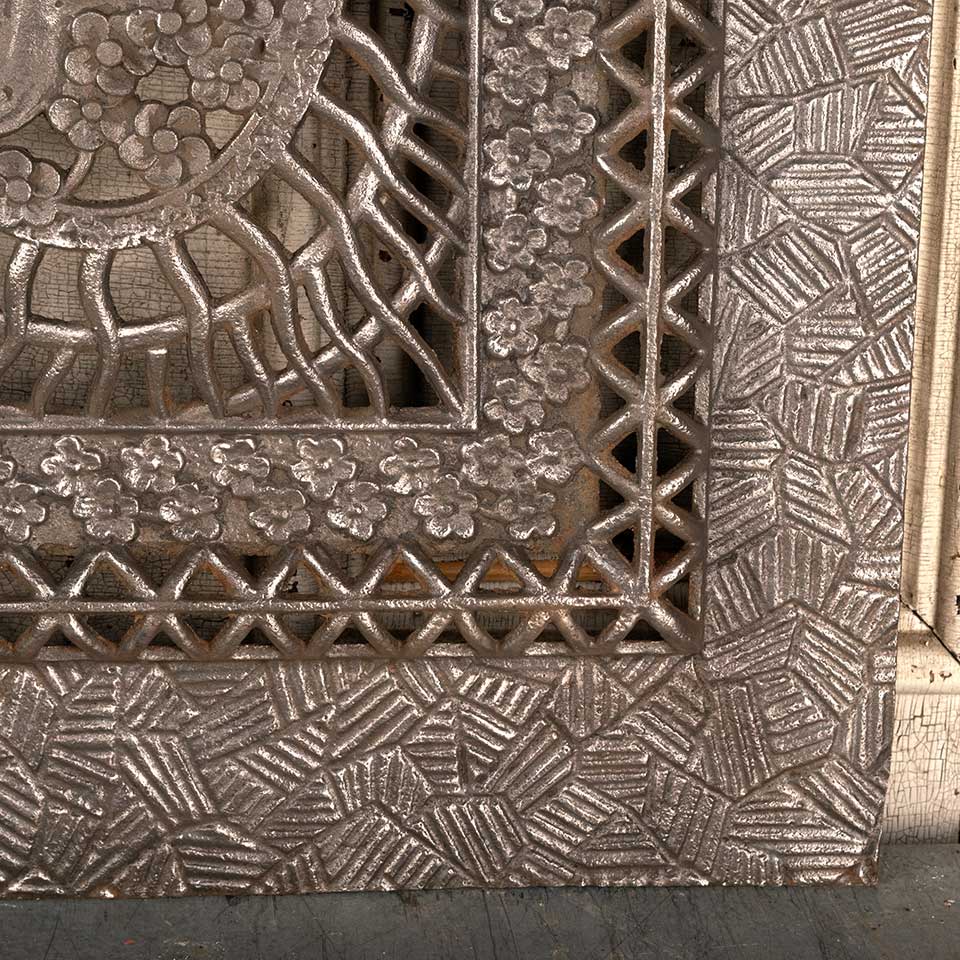 Architectural salvage antique cast iron fireplace summer front cover with figural and floral motif measuring approx. 19 15/16" wide x 25 1/2" tall x 3/4" front to back. See photos to evaluate condition.