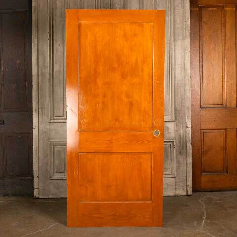 Architectural salvage two panel wood interior door measuring approx. 35 7/8" wide x 79 7/8" tall x 1 3/8" thick. This is not an antique door. See photos to evaluate condition.