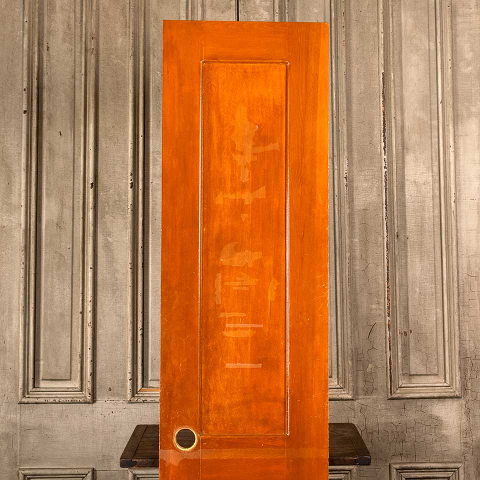 Architectural salvage two panel wood interior door measuring approx. 17 13/16" wide x 80" tall x 1 3/8" thick. This is not an antique door. See photos to evaluate condition.