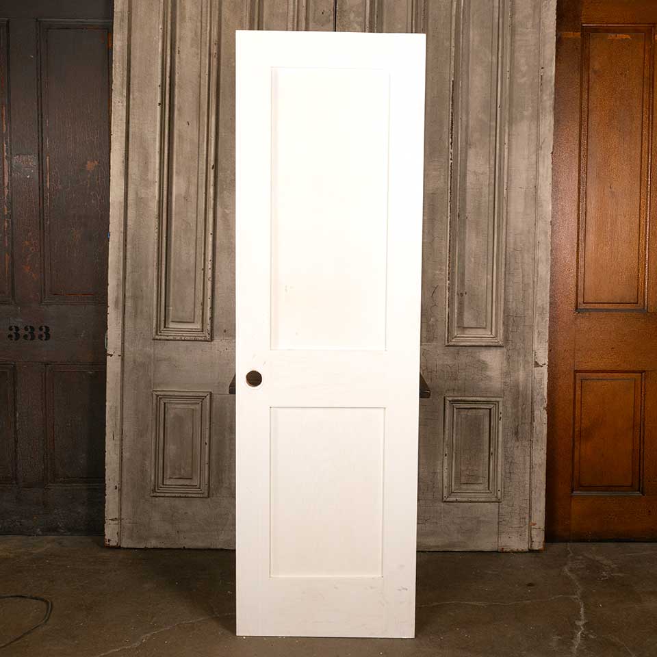 Architectural salvage 2 panel painted wood interior door measuring approx. 23 7/8" wide x 78 5/8" tall x 1 3/8" thick. This is not an antique door. See photos to evaluate condition.