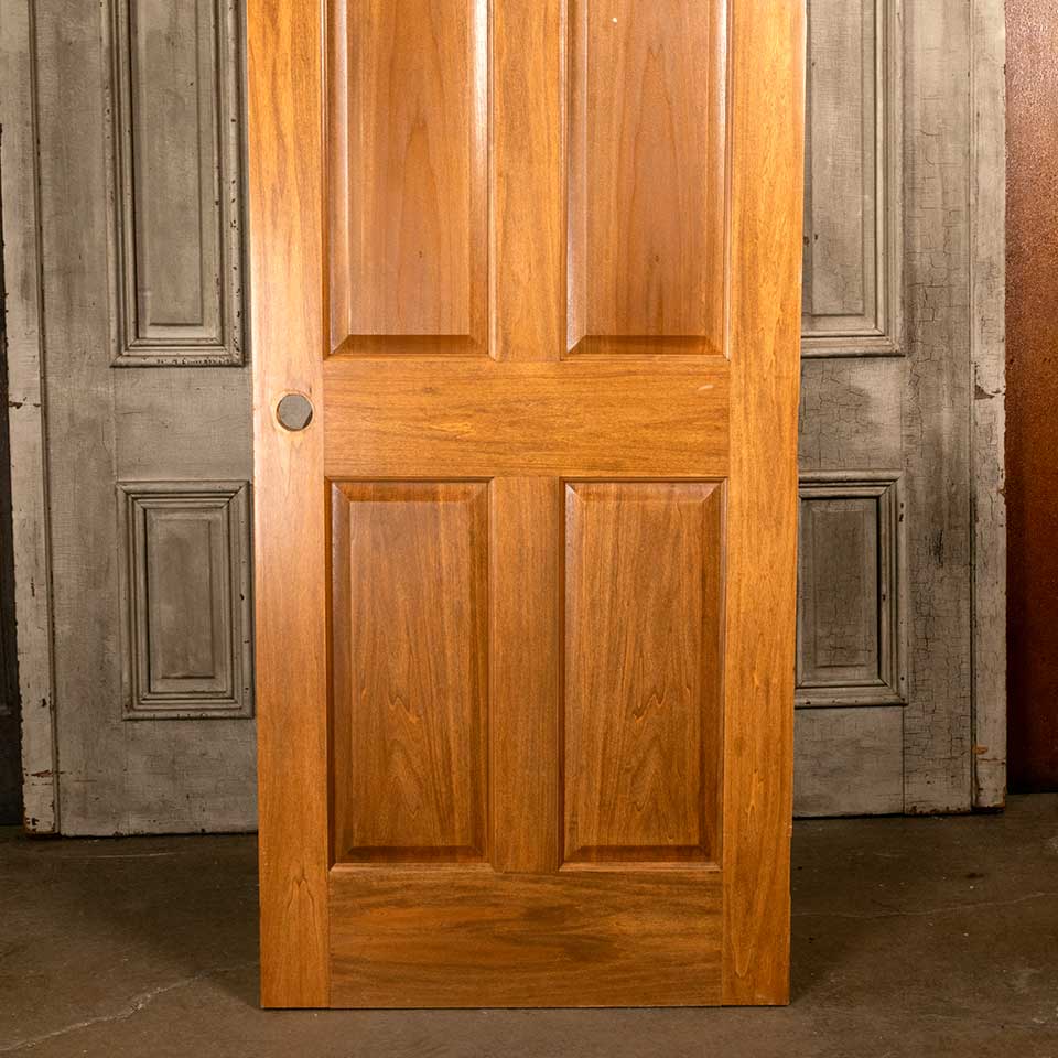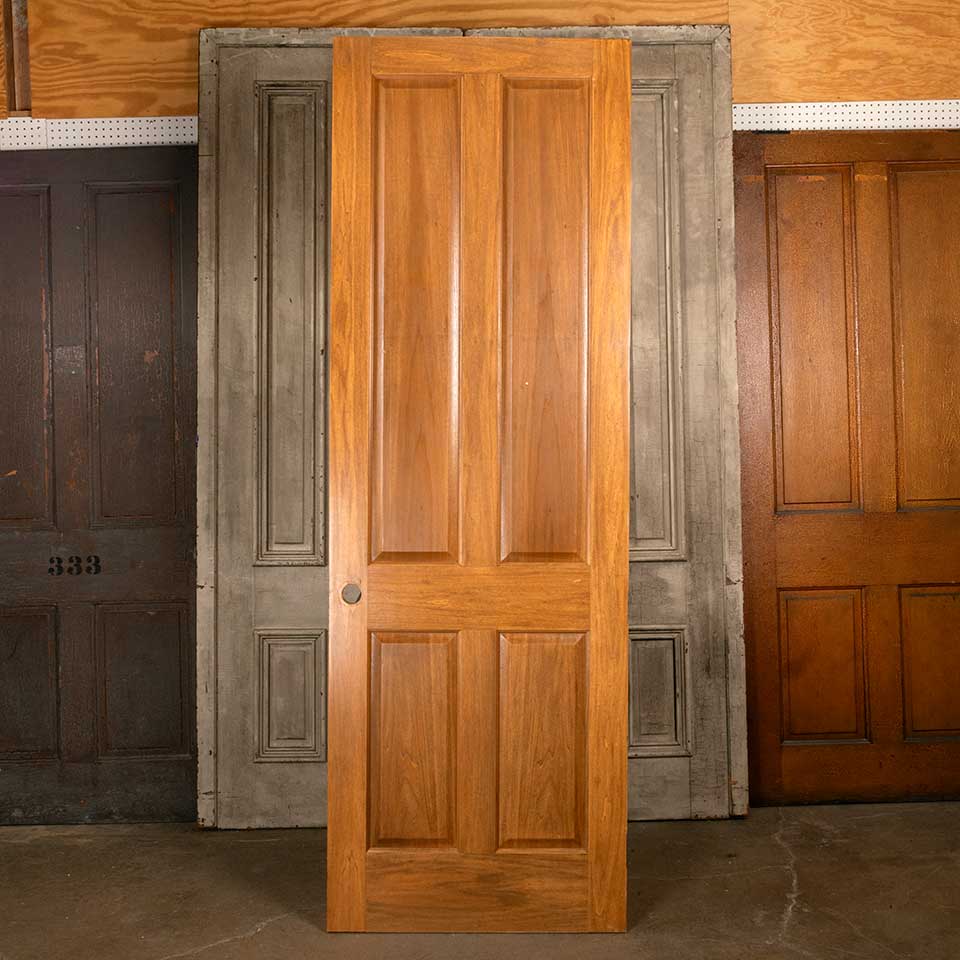 Architectural salvage interior four panel wood door measuring approx. 32 1/8" wide x 96" tall x 1 3/8" thick. This is not an antique door. As this is a salvaged door there may be some minor blemishes in the wood. See photos to evaluate condition.