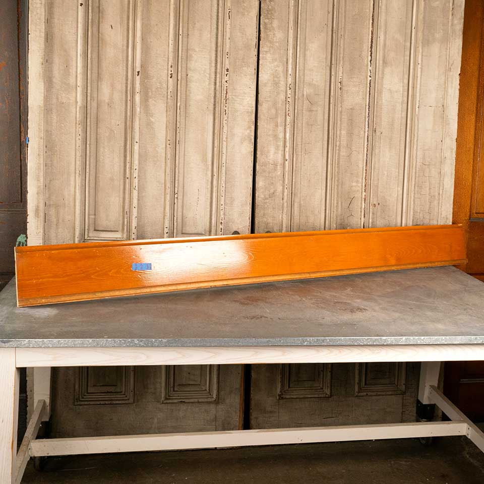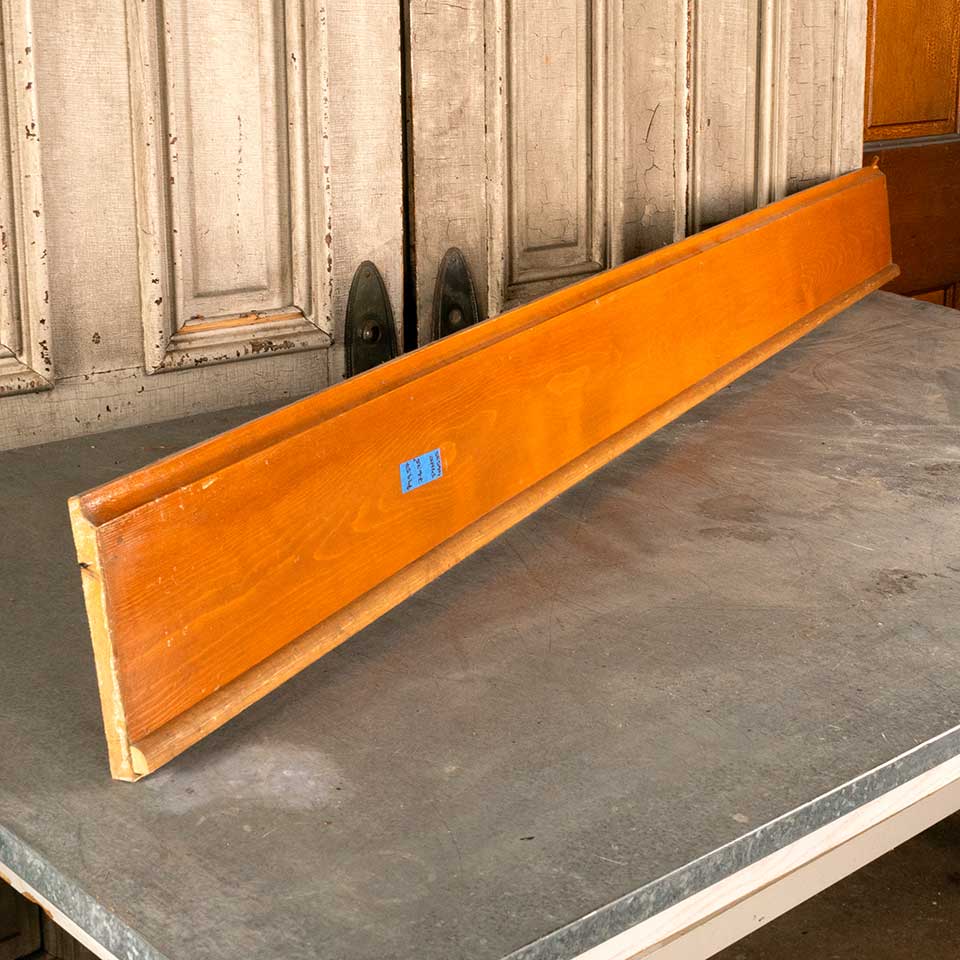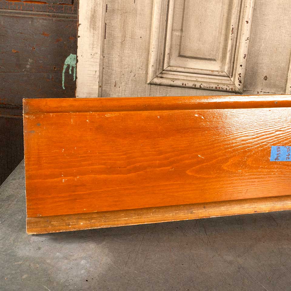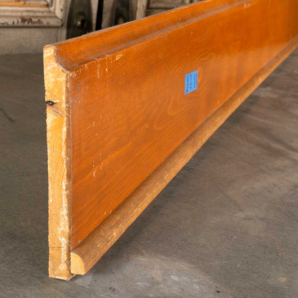 Architectural salvage pine baseboard trim measuring approx. 6 7/8" tall x 3/4" thick in the following lengths: 2 @ 47 1/2" ($30.88); 2 @ 49" ($31.85); 1 @ 53 1/2" ($34.78); 1 @ 56 1/4" ($36.56); 1 @ 64 1/2" ($41.93); 1 @ 68 1/4" ($44.36)