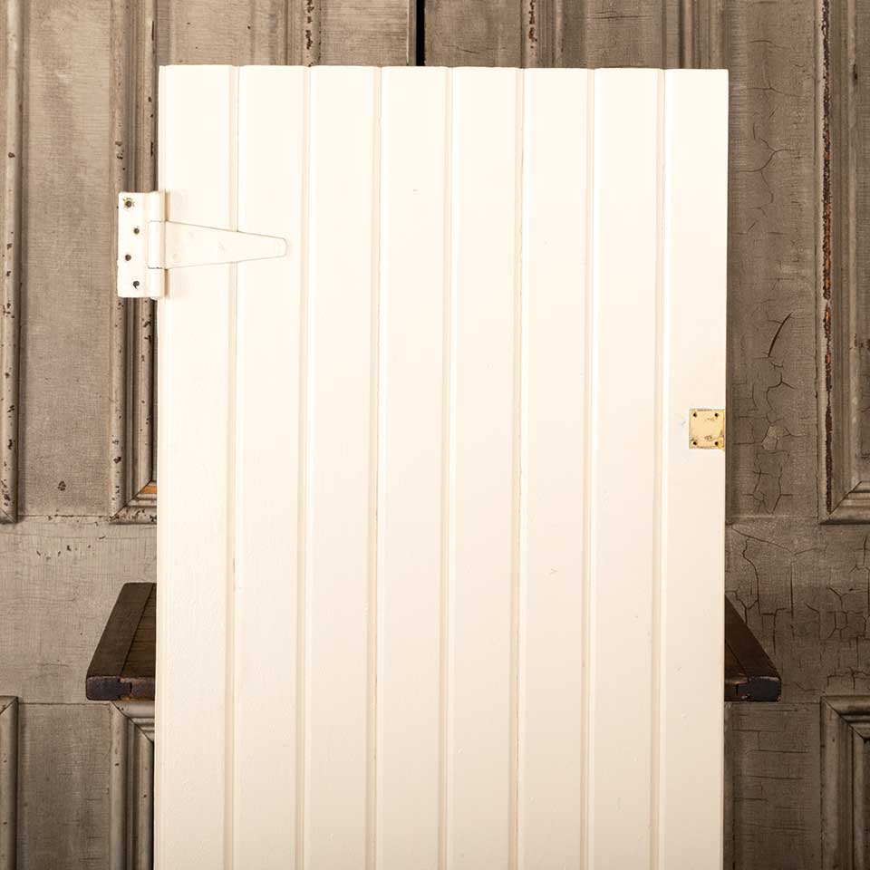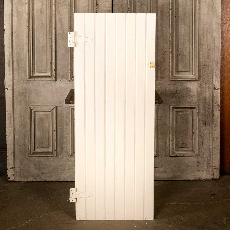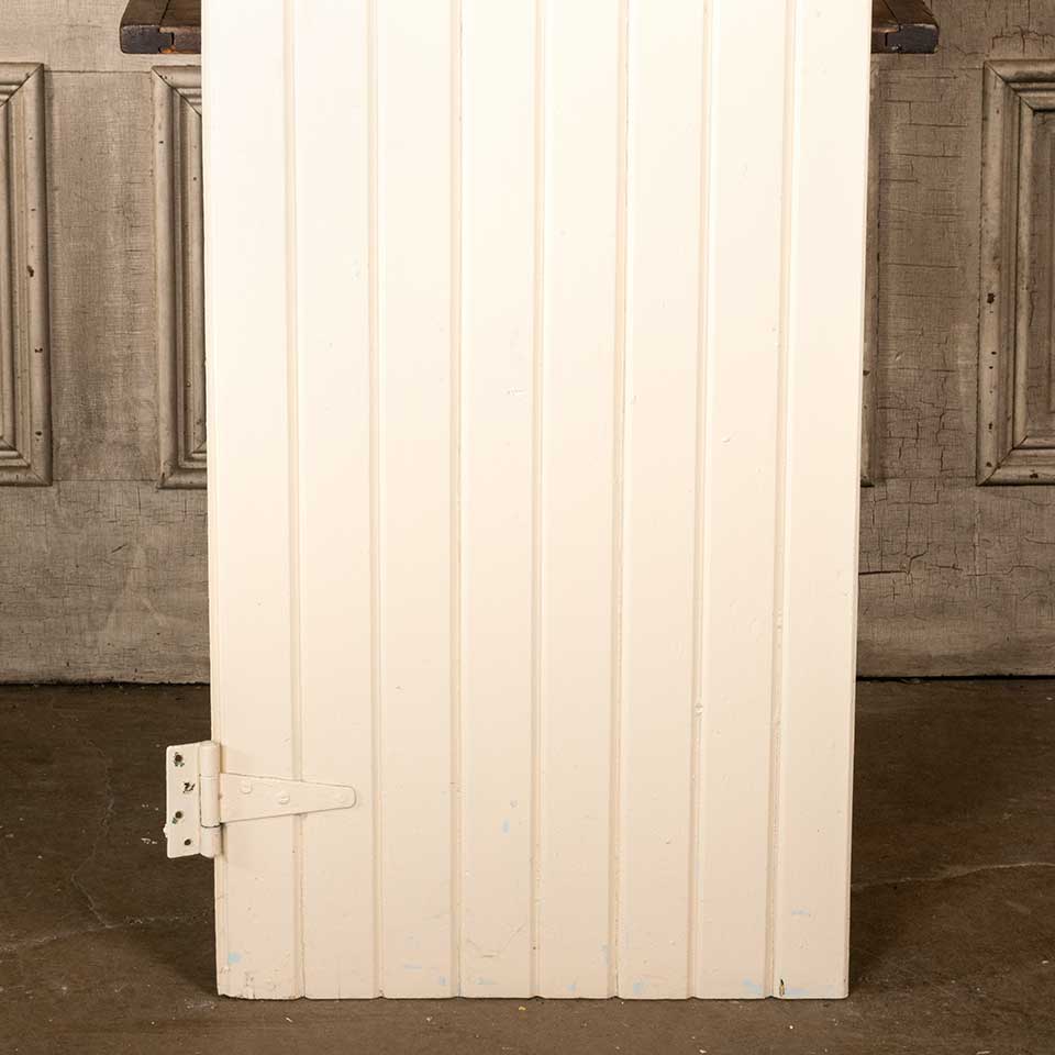 Architectural salvage antique V-groove board door measuring approx. 21 5/8" wide x 56 1/2" tall x 1 1/2" front to back. See photos to evaluate condition.