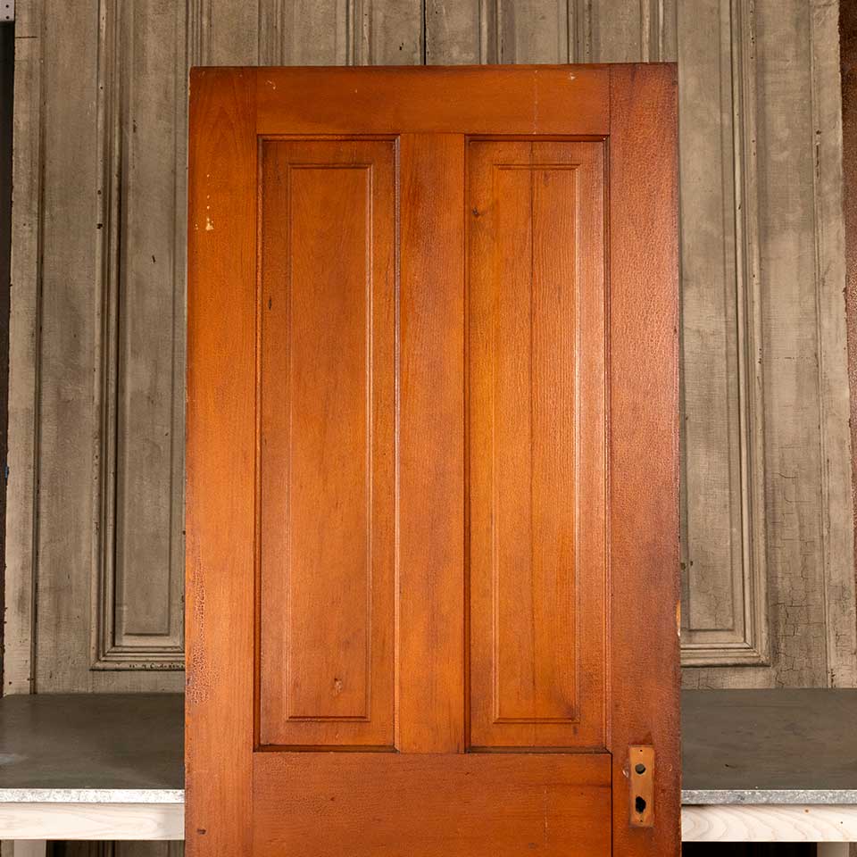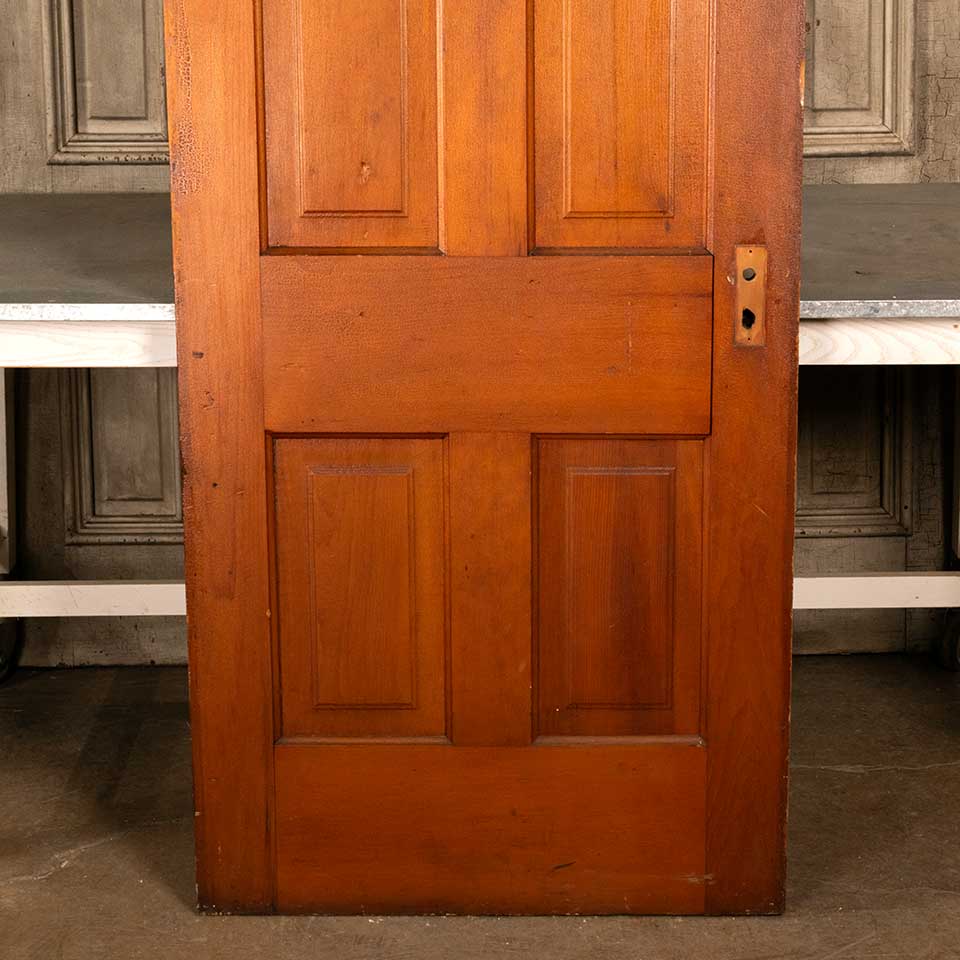 Architectural salvage antique pine four panel interior door measuring approx. 31 7/8" wide x 79 7/8" tall x 1 3/8" thick. One of the top panels has a crack in it. See photos to evaluate condition.