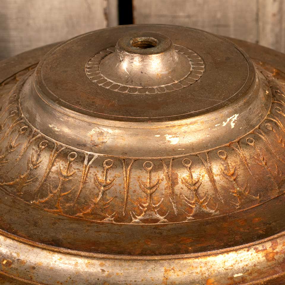 Architectural salvage round antique cast brass floor lamp base measuring approx. 12 1/2" in diameter x 4" tall. Marked on the bottom M412 MITCHELL. See photos to evaluate condition.