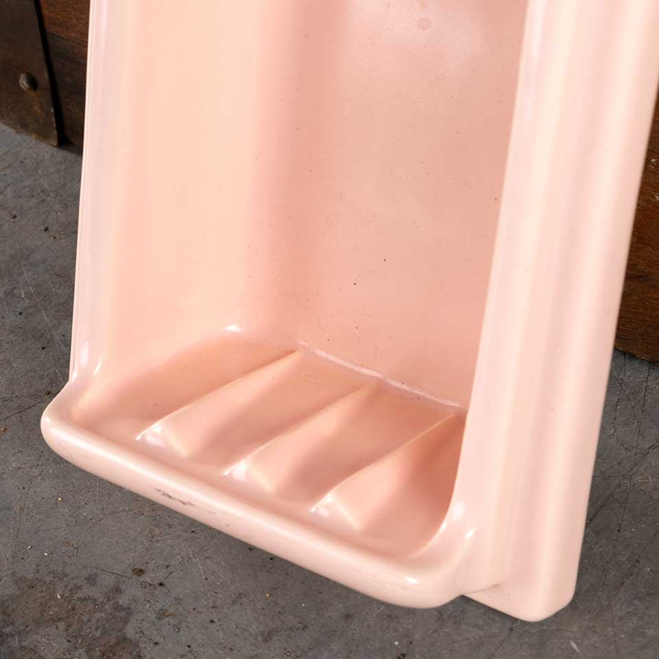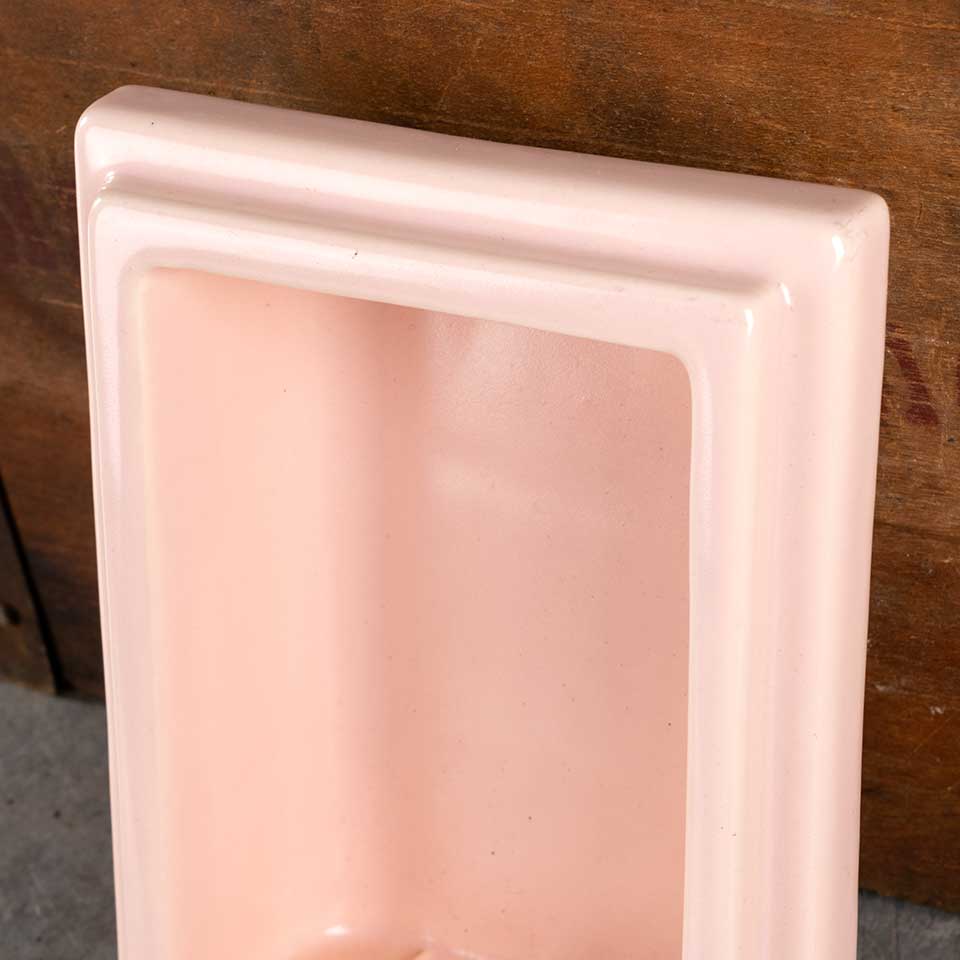 Architectural salvage vintage pink MOSAIC in-the-wall bathroom soap dish niche measuring approx. 5 1/4" wide x 7 1/4 tall x 2" front to back. See photos to evaluate condition.