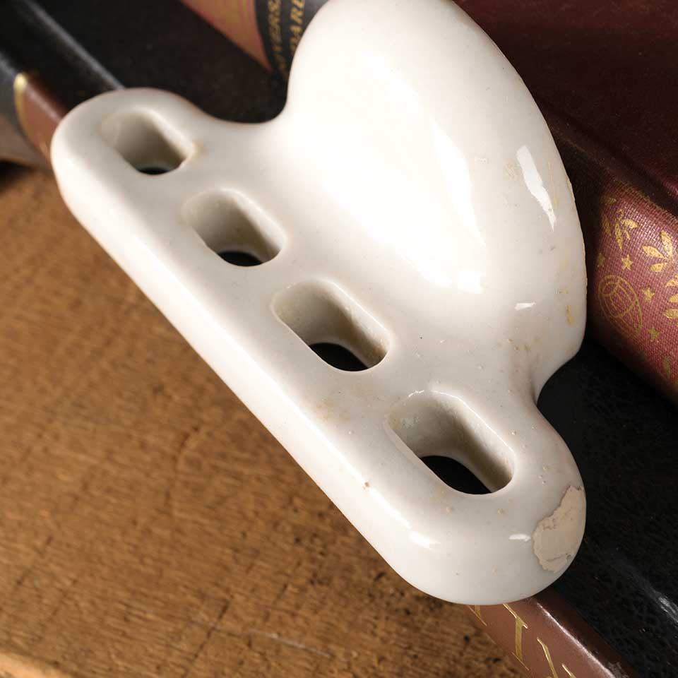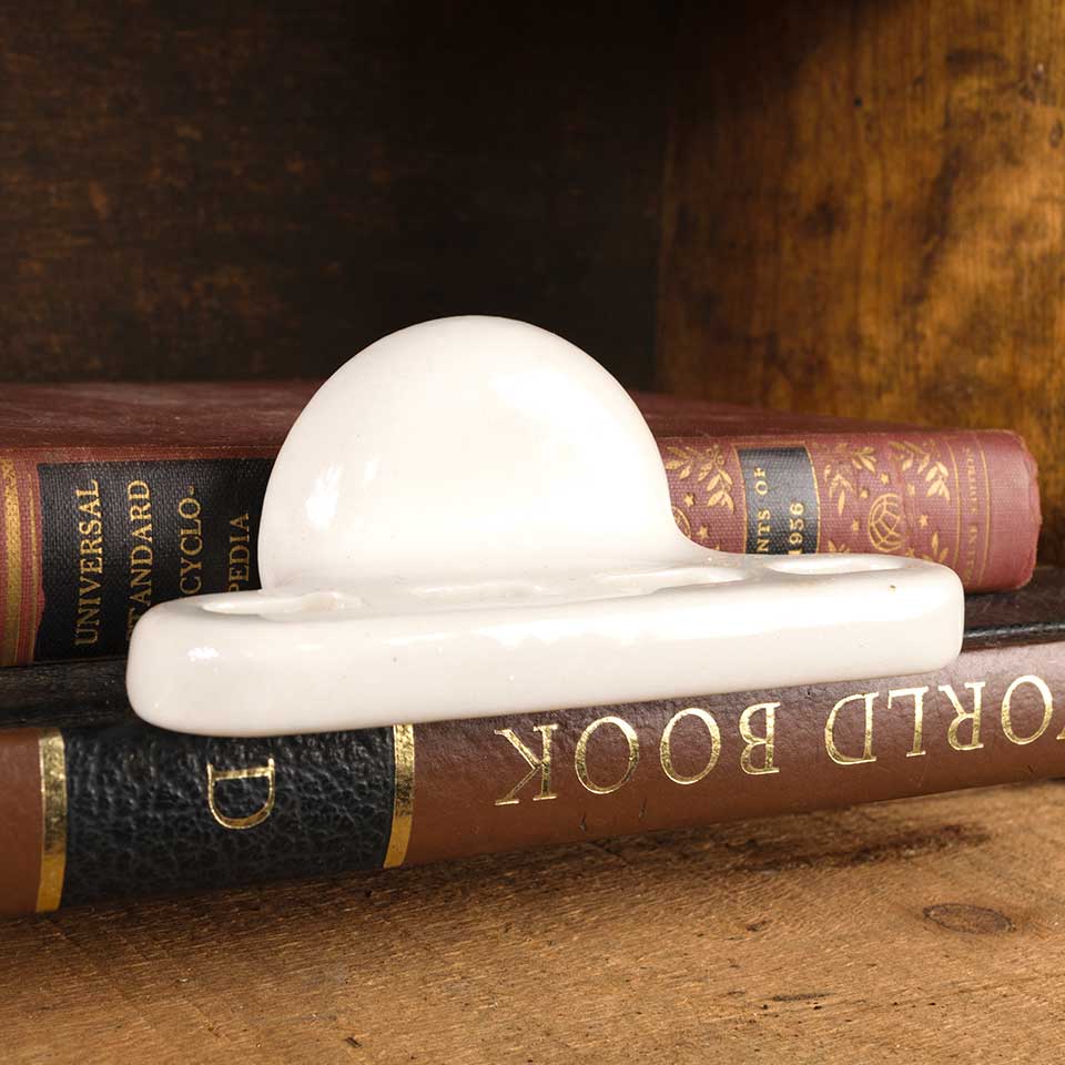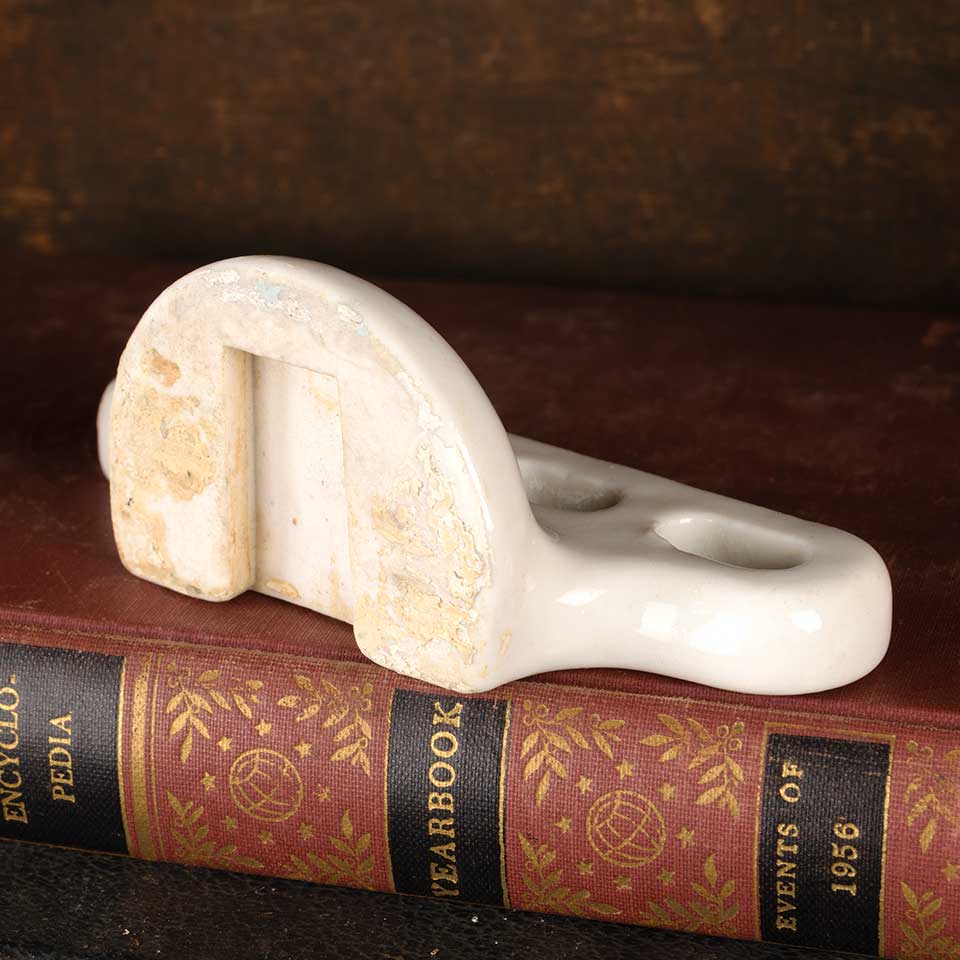 Architectural salvage antique porcelain wall mount bathroom toothbrush holder measuring approx. 4 5/8" wide x 1 3/4" tall x 1 3/4" front to back. Mounting bracket not included. See photos to evaluate condition.