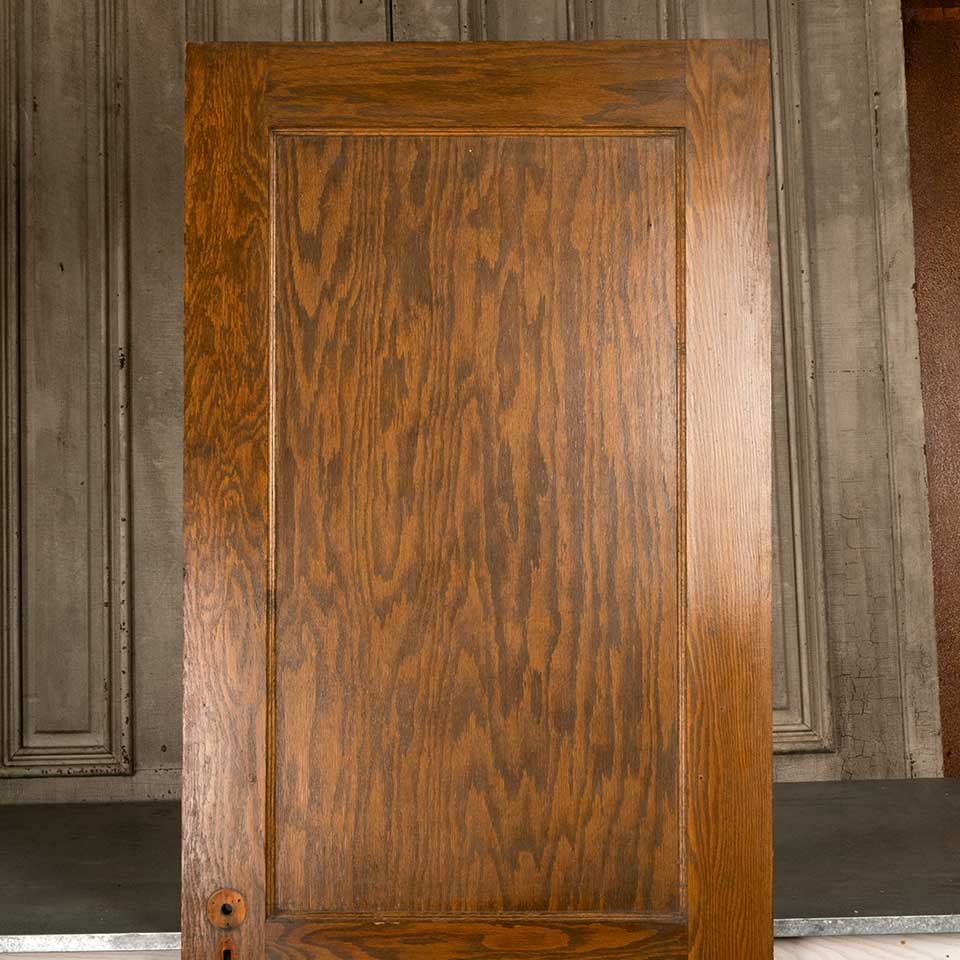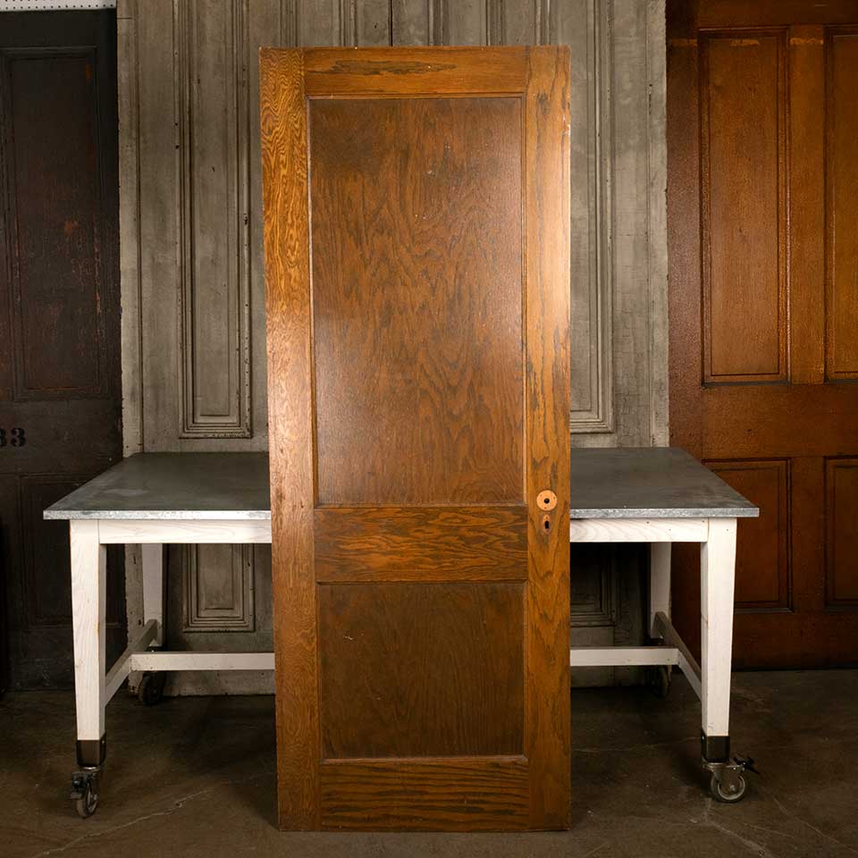 Architectural salvage antique two panel oak interior door measuring approx. 29 11/16" wide x 77 7/8" tall x 1 3/8" thick. See photos to evaluate condition.