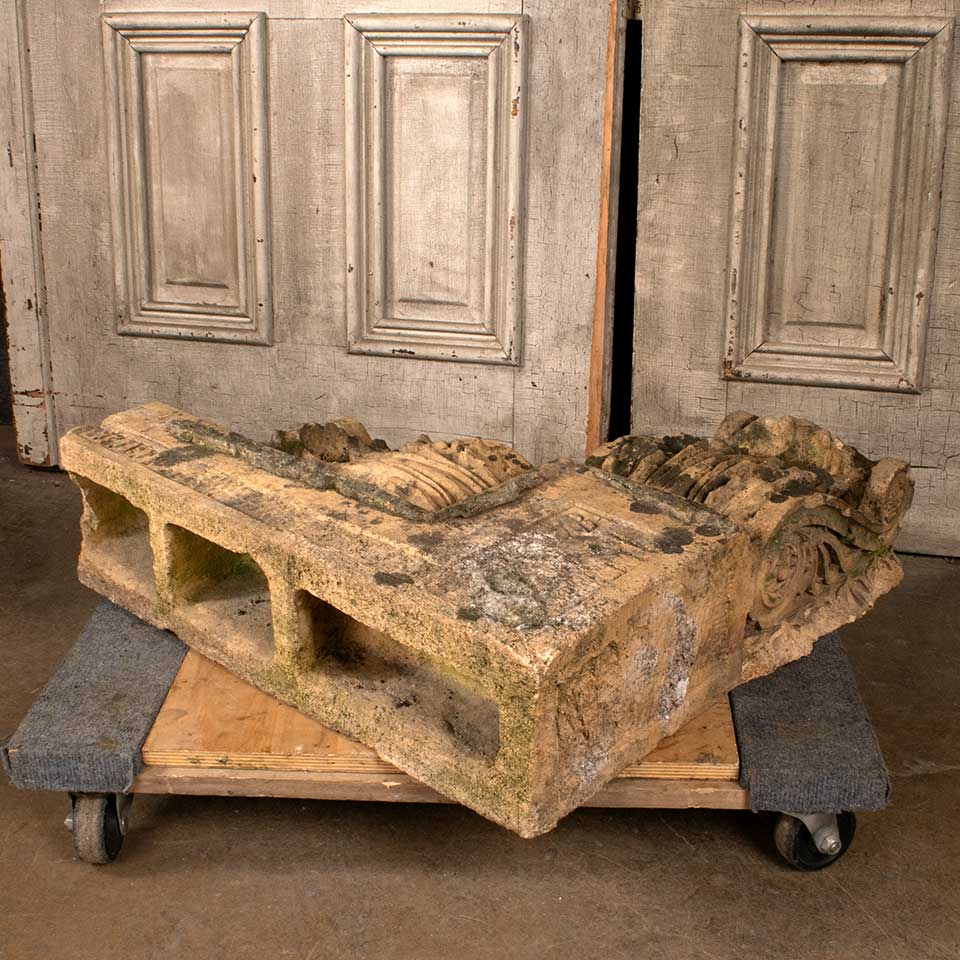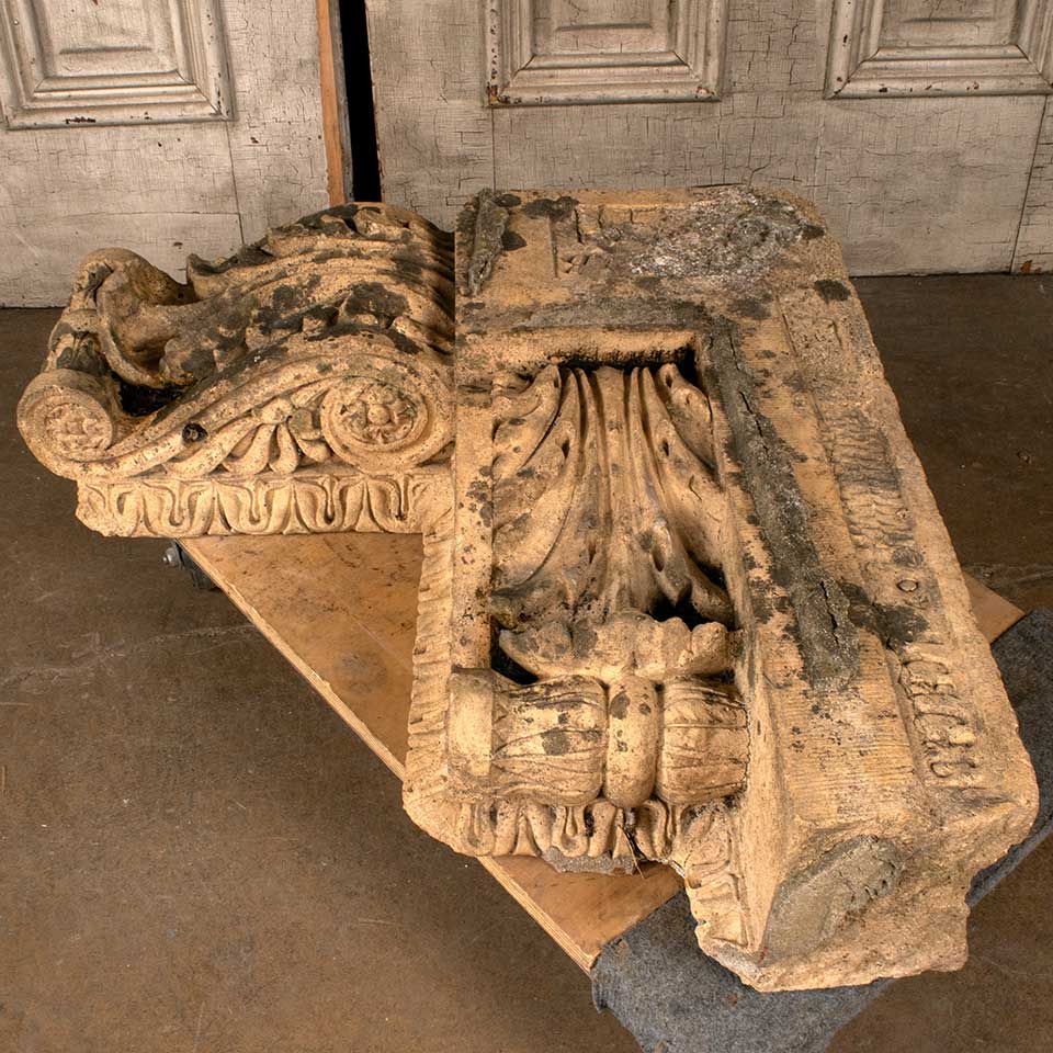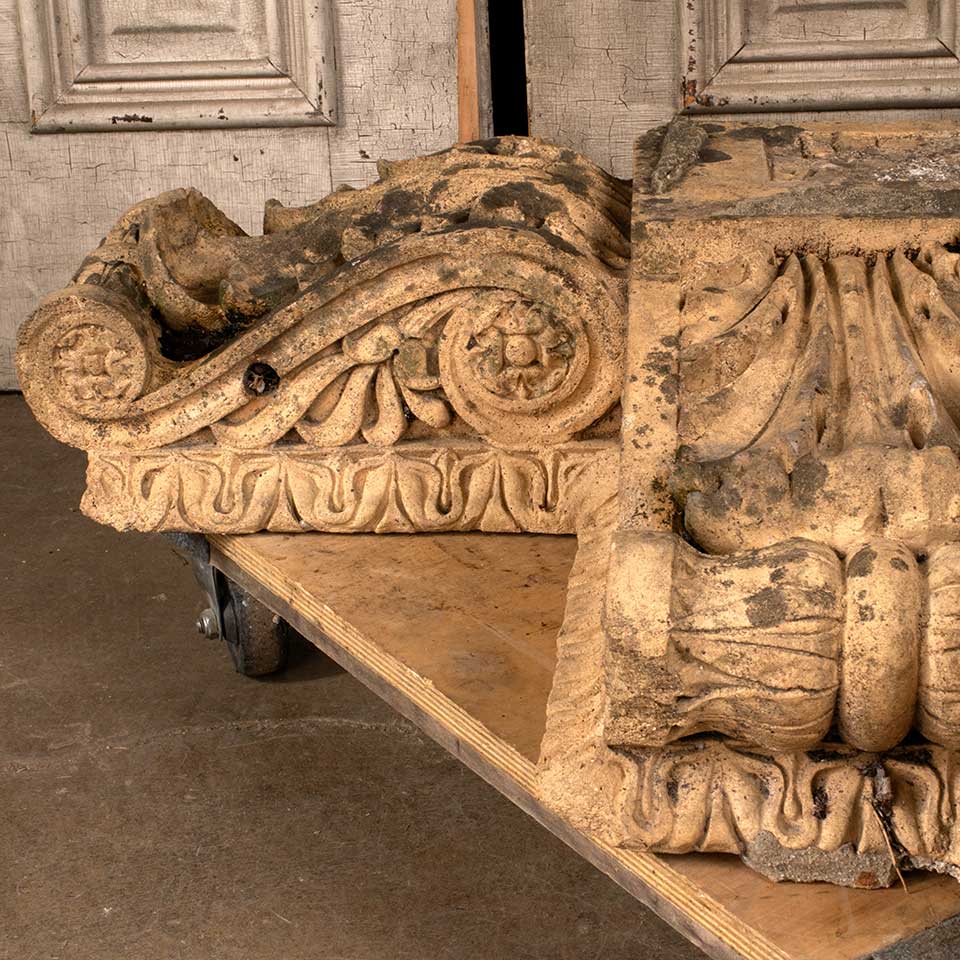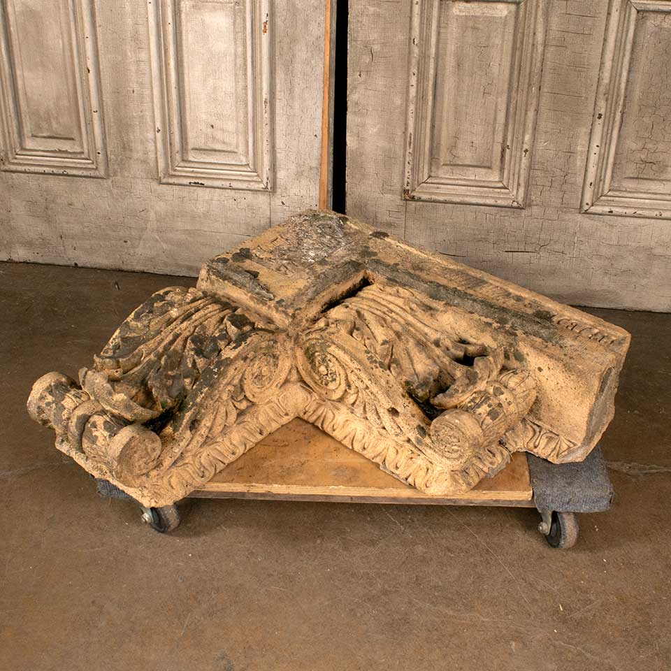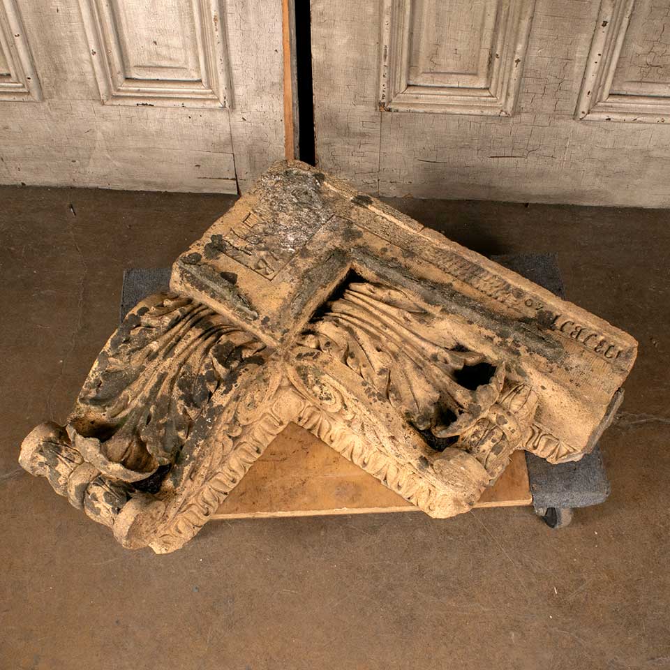 Architectural salvage antique terra cotta corner building ornament measuring approx. 25 1/2" x 25 1/2" x 6 3/4" tall. This artifact was salvaged from Union Station in Columbus, Ohio when unfortunately demolished in 1979. This beautiful train station was constructed in 1897 and designed by renowned Chicago architect Daniel Burnham. This is great opportunity to acquire a wonderful piece of architectural history. See photos to evaluate condition.