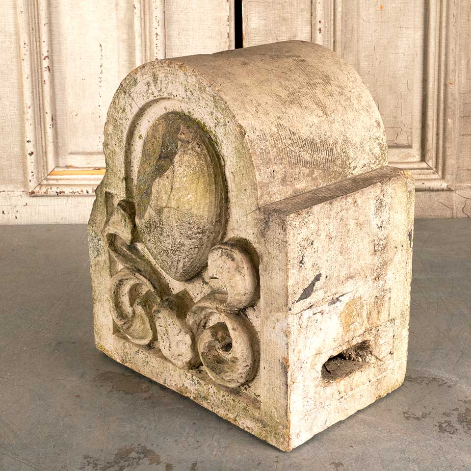 Architectural salvage antique terra cotta building ornament pediment / cartouche measuring approx. 13 1/16" wide x 15 1/8" tall x 8" front to back. There's some material loss which adds to the piece's character. See photos to evaluate condition.