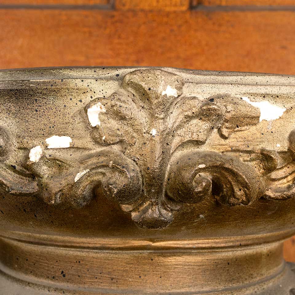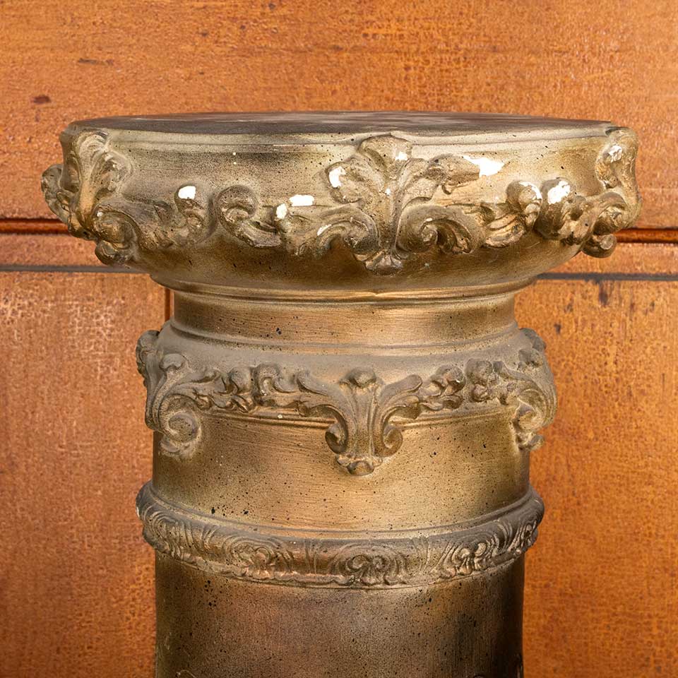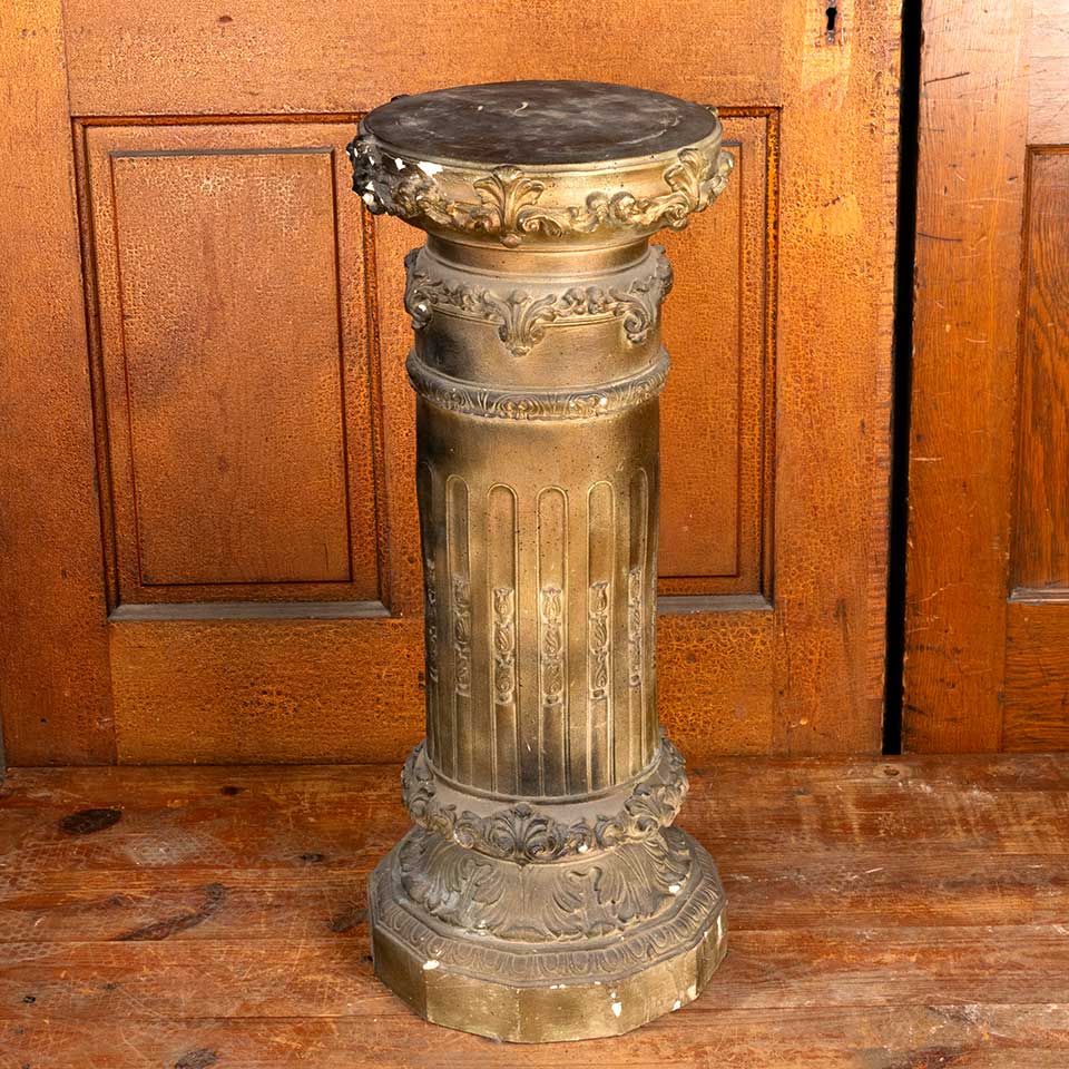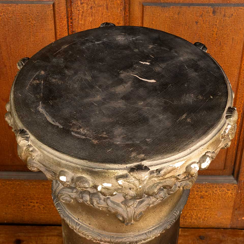 Cast resin architectural column pedestal base measuring approx. 31 3/4" tall with a 13 1/4" diameter top and a 13 3/4" diameter base. See photos to evaluate condition.