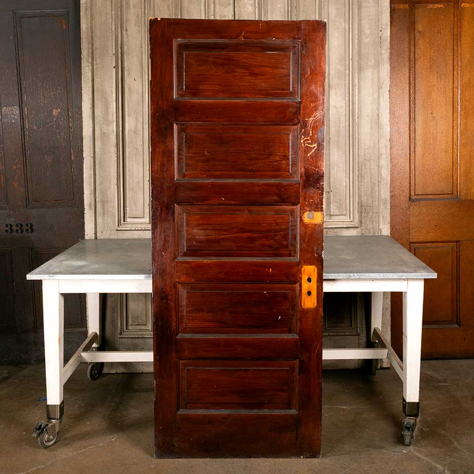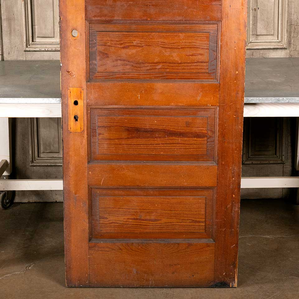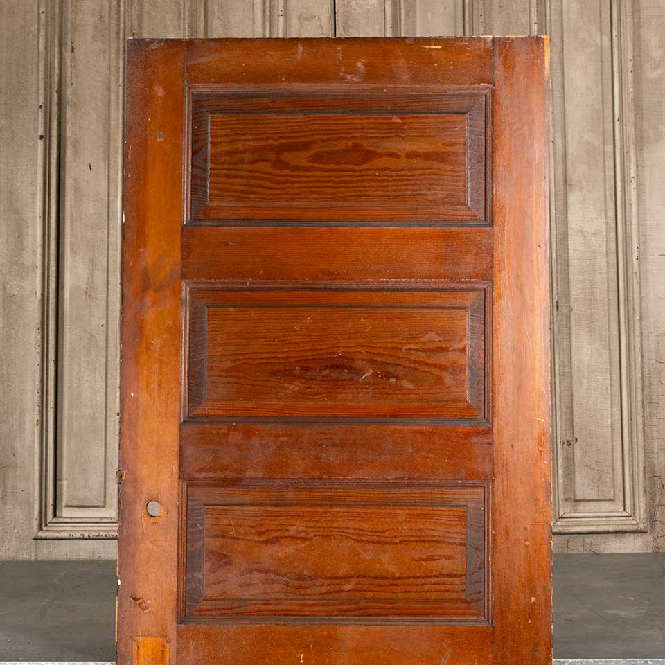 Architectural salvage antique five horizontal panel pine wood interior door measuring approx. 29 1/2" wide x 76" tall x 1 3/8" thick. See photos to evaluate condition.